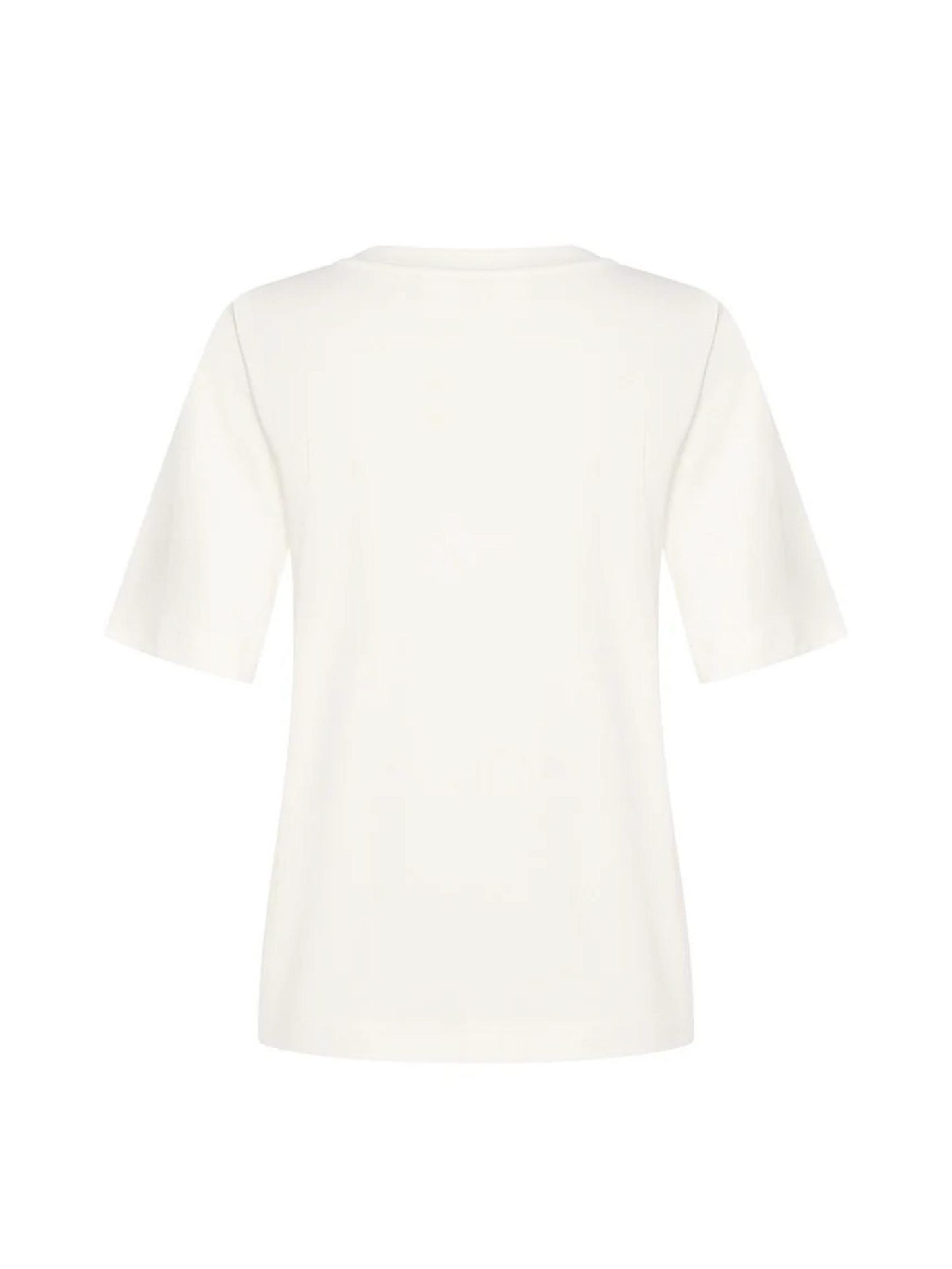 Het zeno t-shirt van Aimée the Label is zo’n basic die je het liefst iedere dag draagt. Gemaakt van zachte katoen en uitgevoerd in een frisse off-white tint, is dit shirt een perfecte aanvulling op je garderobe.
