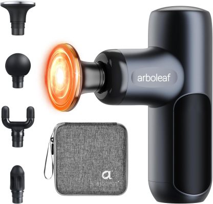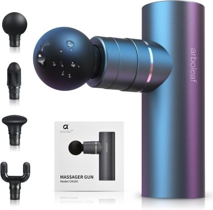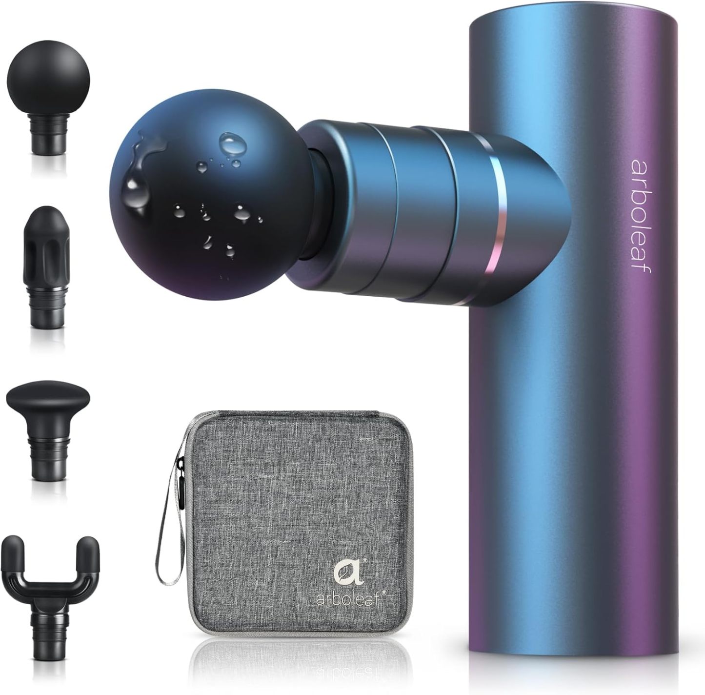 arboleaf Massage Gun, Mini Deep Weave, Muscle Massage Gun with 4 Silicone Heads 5 Levels, 3200rpm, 0.5kg Portable Case, Silent Percussion, Massage Gun for Muscle Relaxation, Long