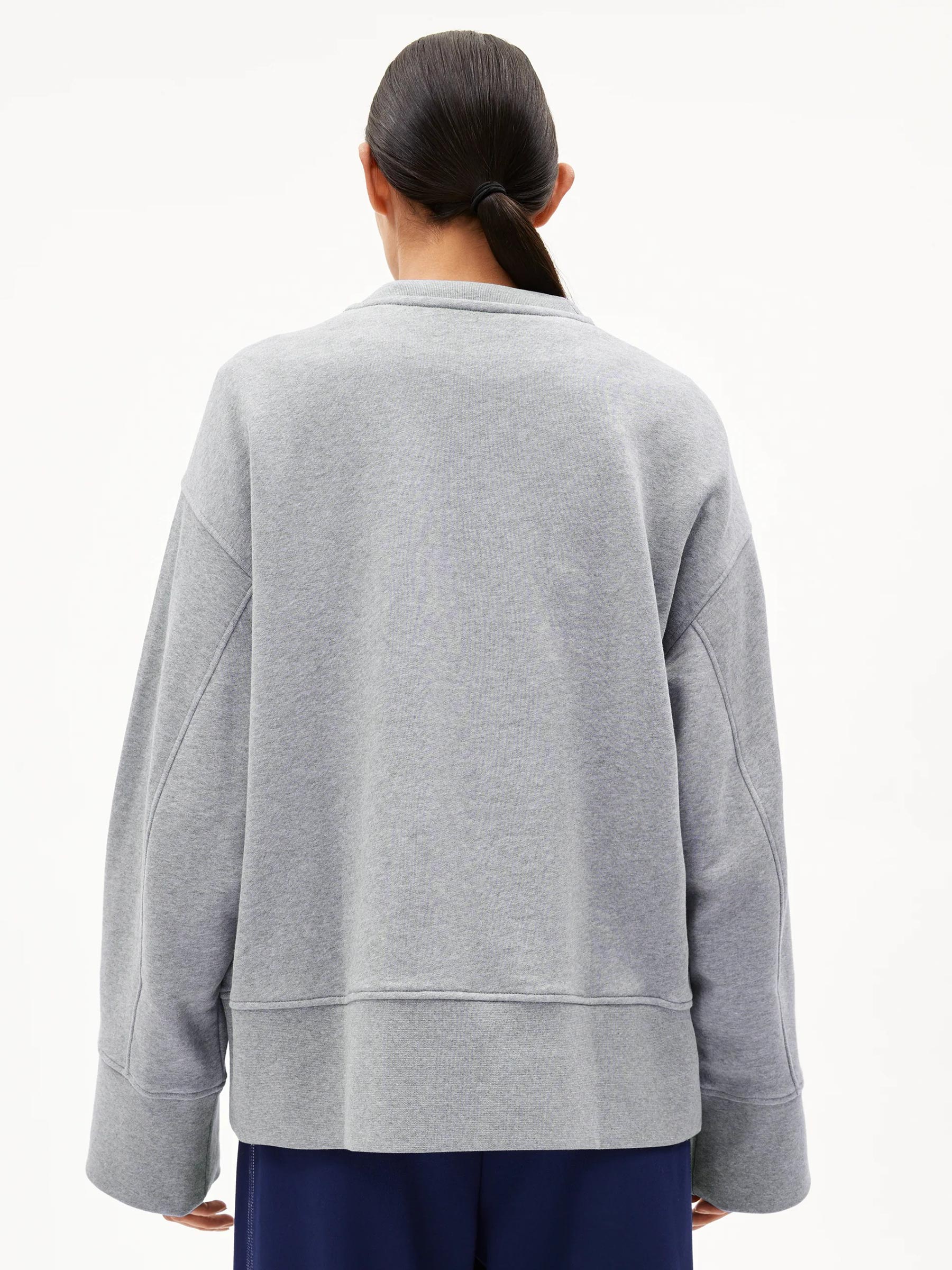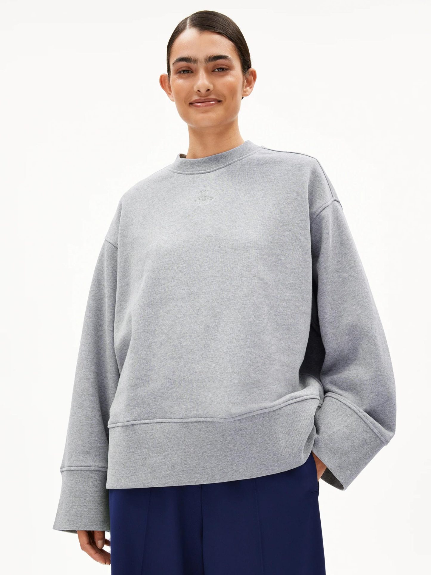 Deze grijze sweatshirt van ARMEDANGELS is een relaxte essential voor je dagelijkse garderobe. De oversized fit en zachte sweatstof geven een comfy gevoel en de subtiele melange maakt dat hij altijd goed combineert. Perfect met een jeans of wide leg pantalon voor een easy going look.