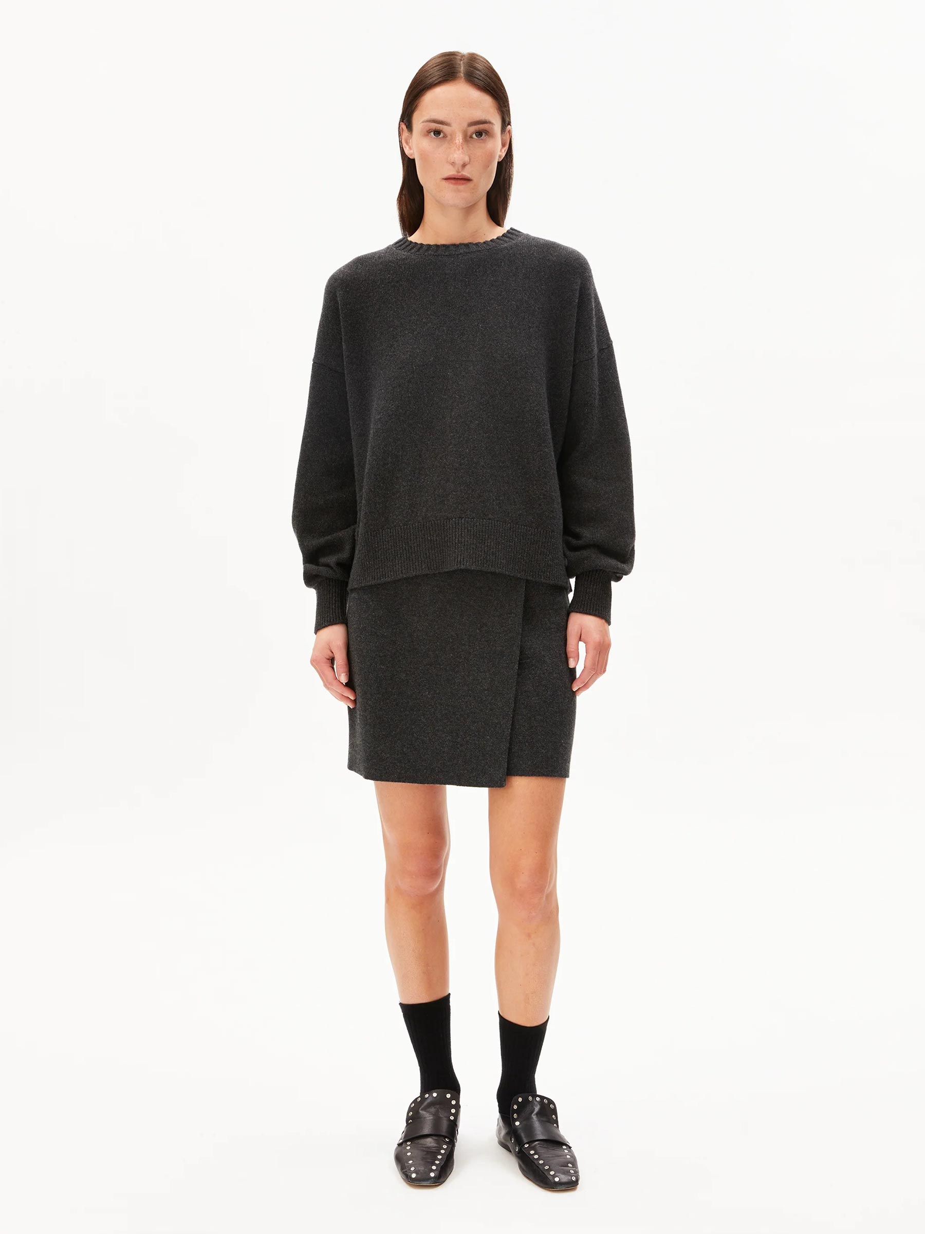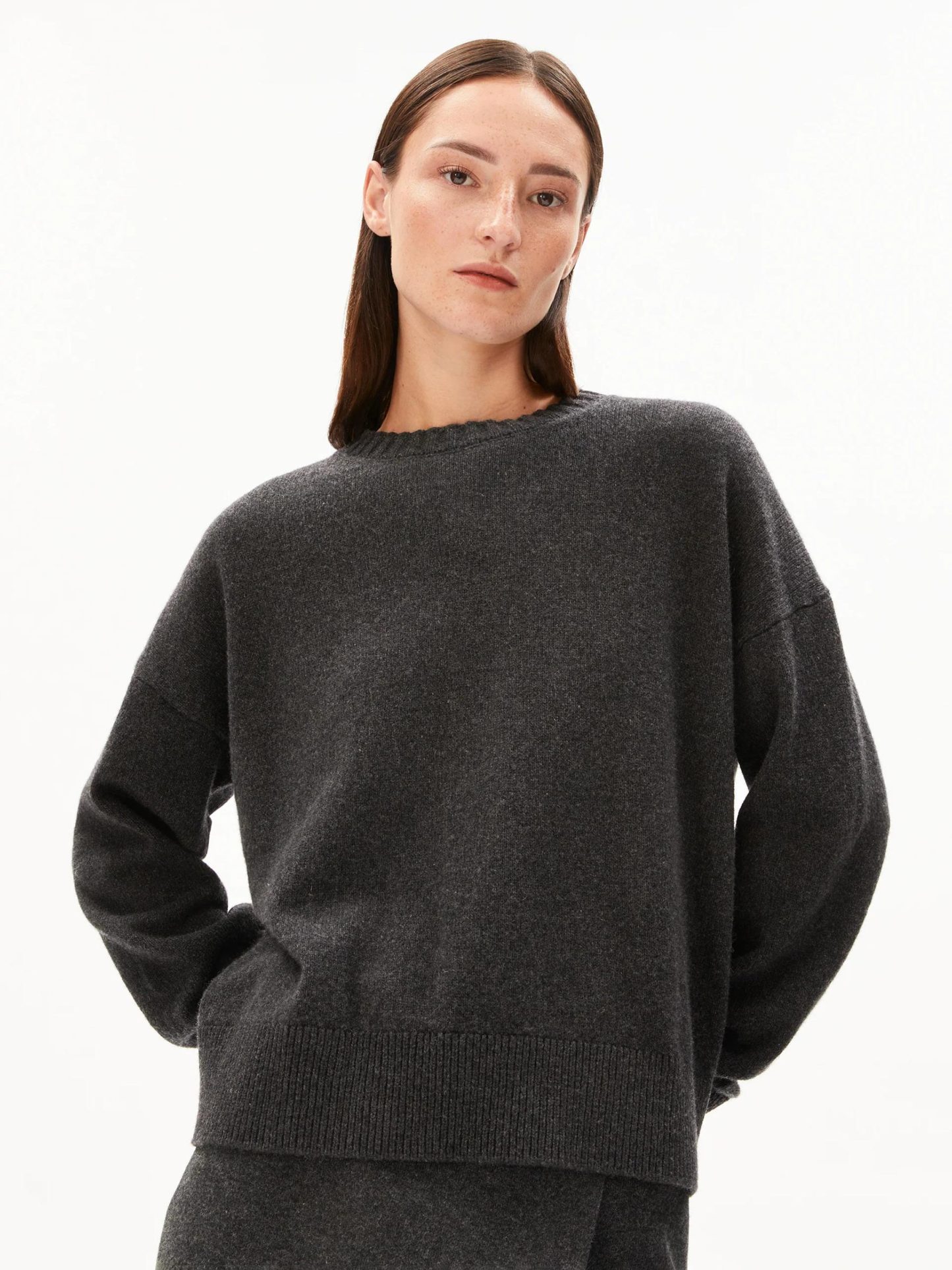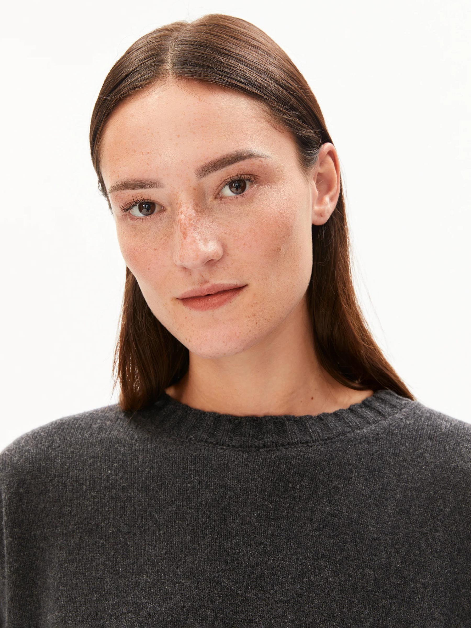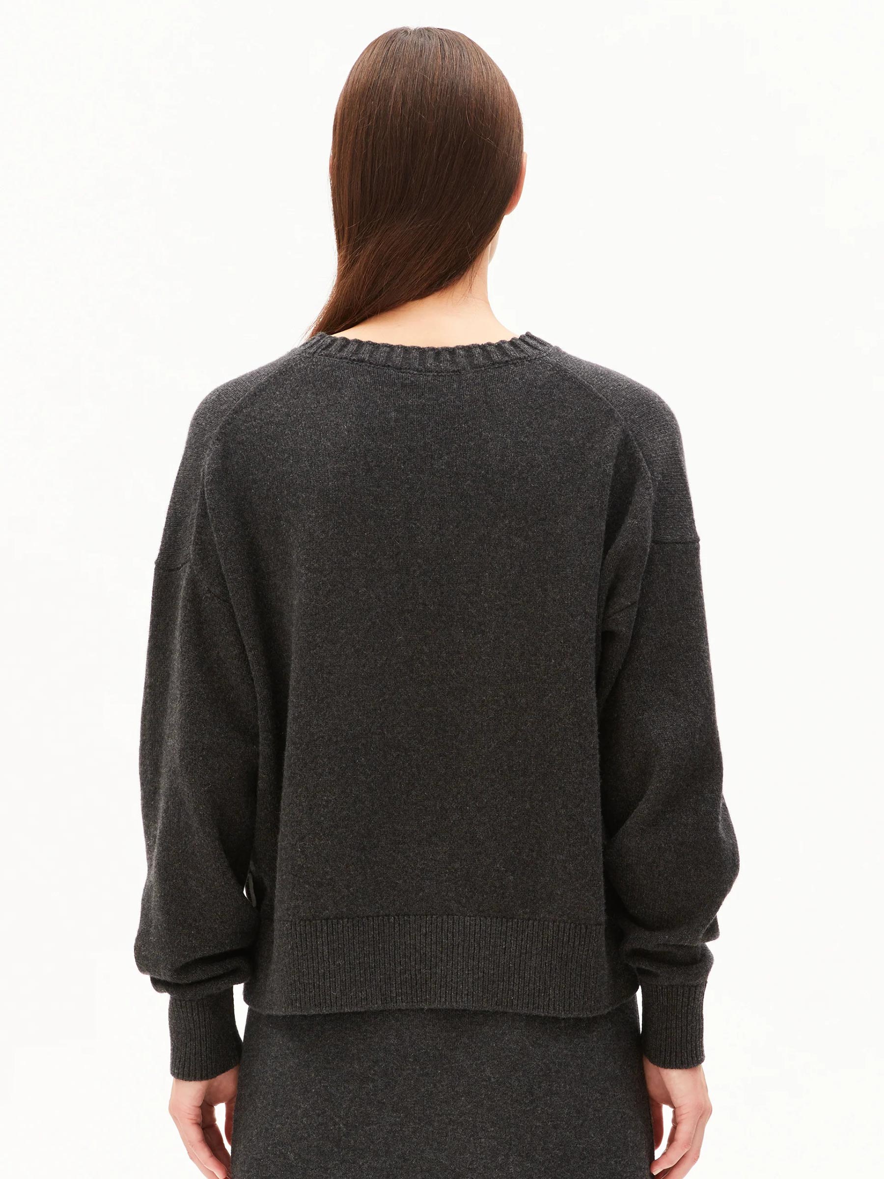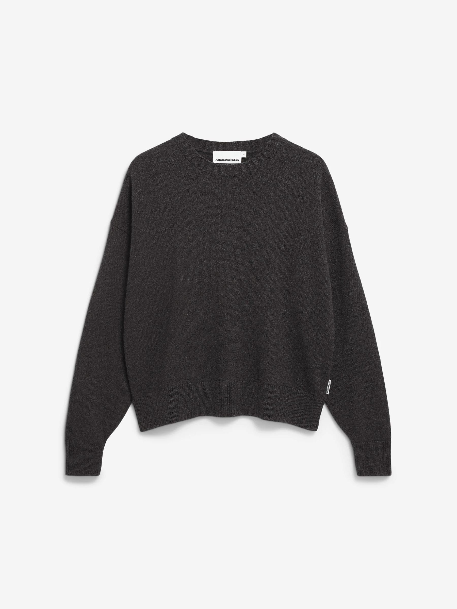 Deze donkergrijze trui van Armedangels is een minimalistische essential die je eindeloos kunt combineren. Het zachte breisel en de relaxte fit maken hem ideaal voor zowel thuis als een dag onderweg. Met zijn tijdloze uitstraling past hij bij al je favoriete basics.