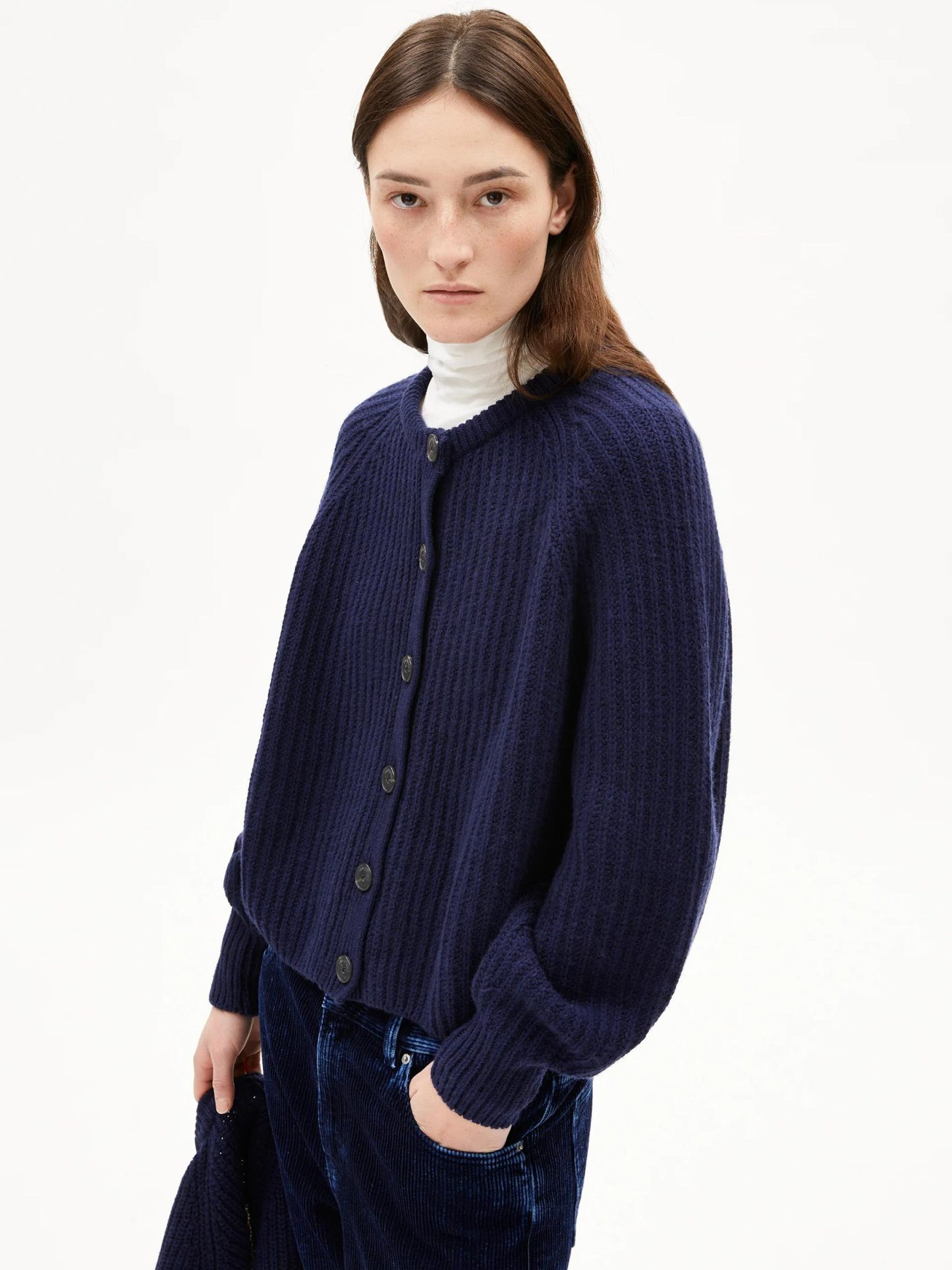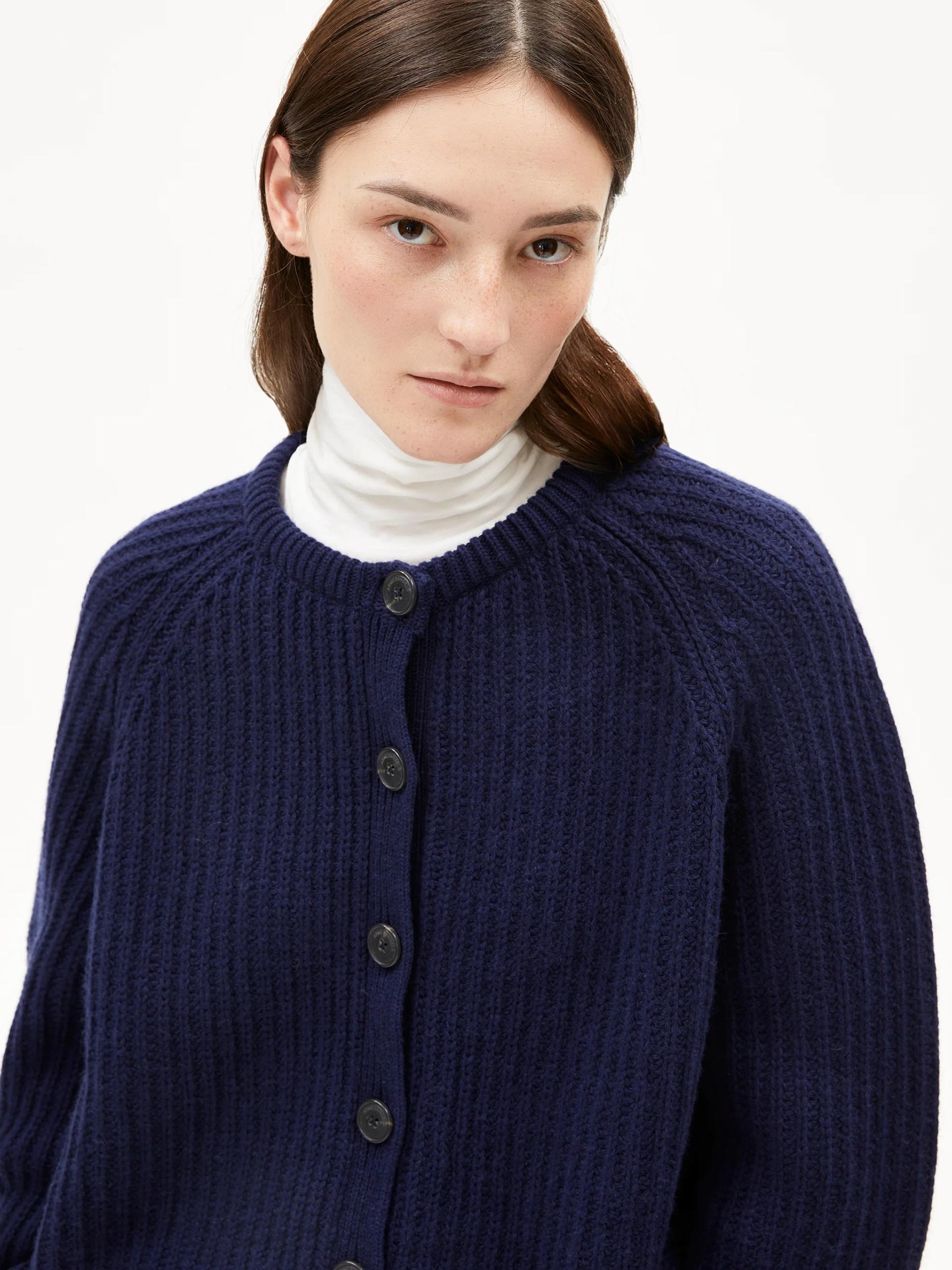 Dit navy gebreide vest van Armedangels is een cozy en duurzame klassieker die je het liefst elke dag aantrekt. Het grofgebreide patroon en de relaxte fit geven een speels effect, terwijl de knoopsluiting hem extra veelzijdig maakt. Combineer met denim of draag over een jurk voor een warme laag met karakter.