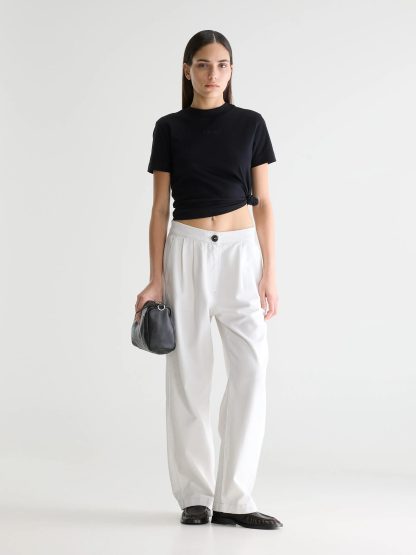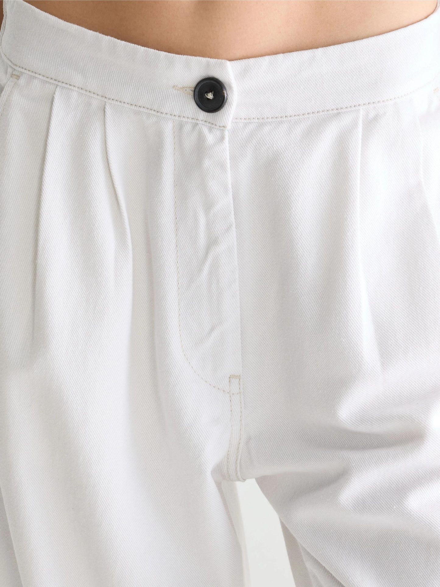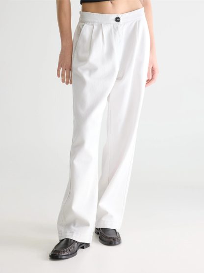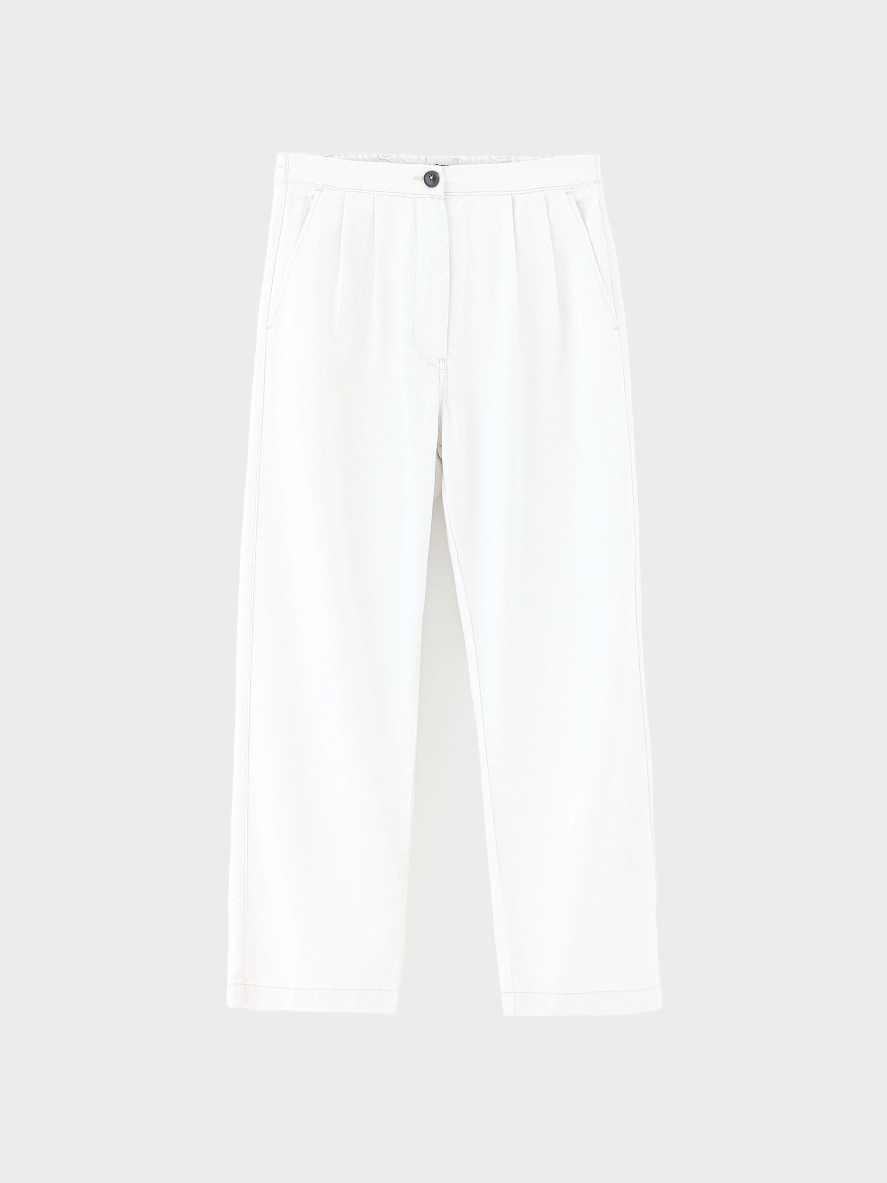 Deze off white broek van Bellerose maakt je outfit helemaal compleet. De broek heeft mooie rechte pijpen en een fit die lekker los valt zonder slordig te worden. Perfect met een simpel T shirt, maar ook heel fijn met een blouse of knit.