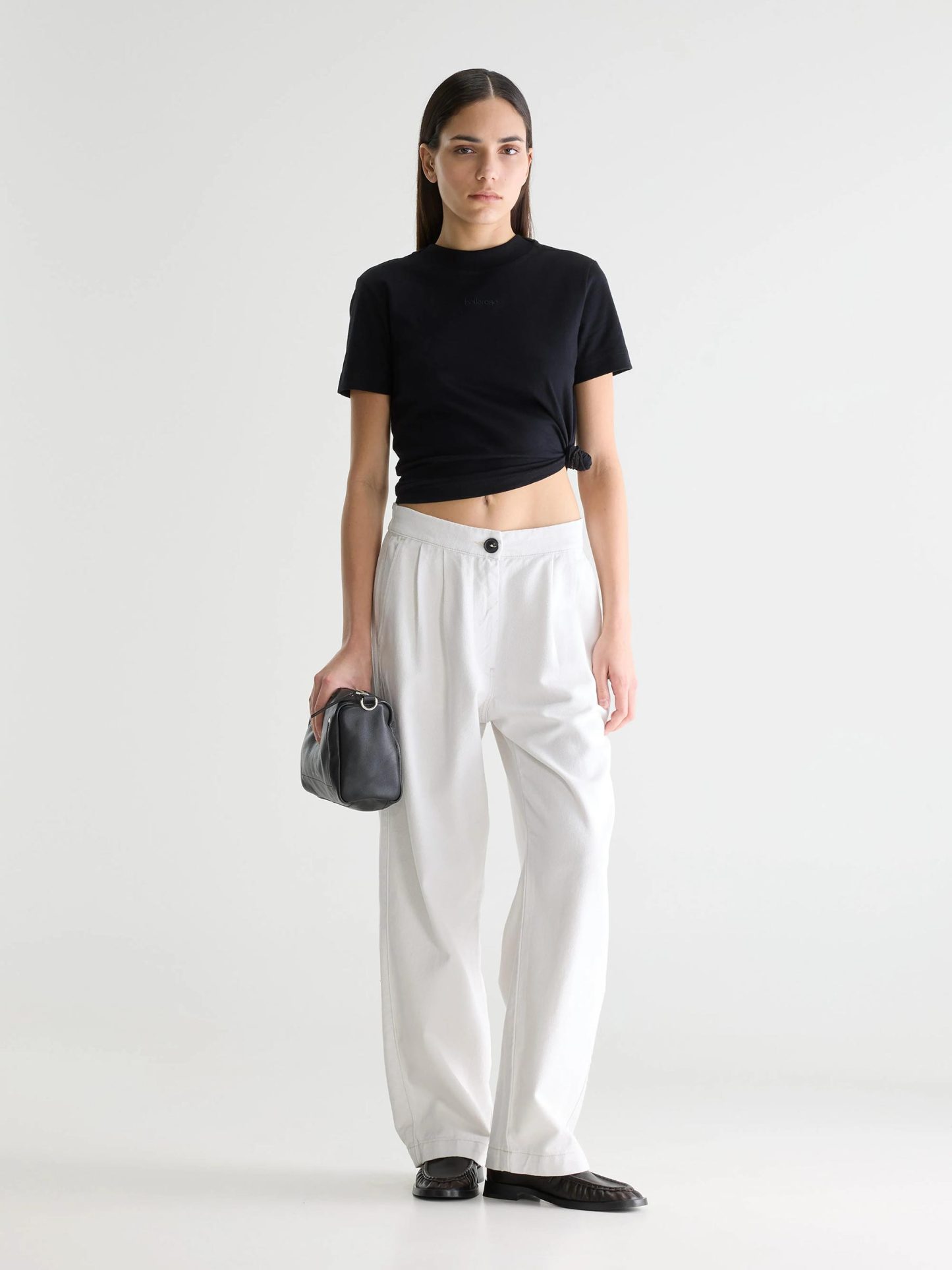 - Straight, wide-leg fit