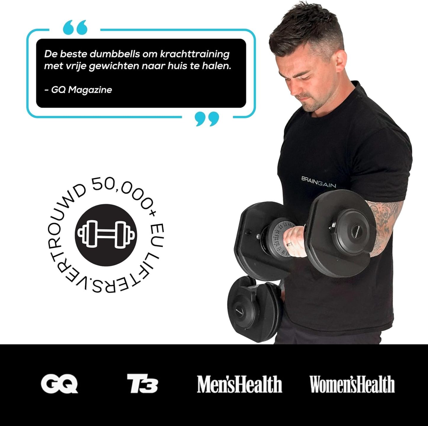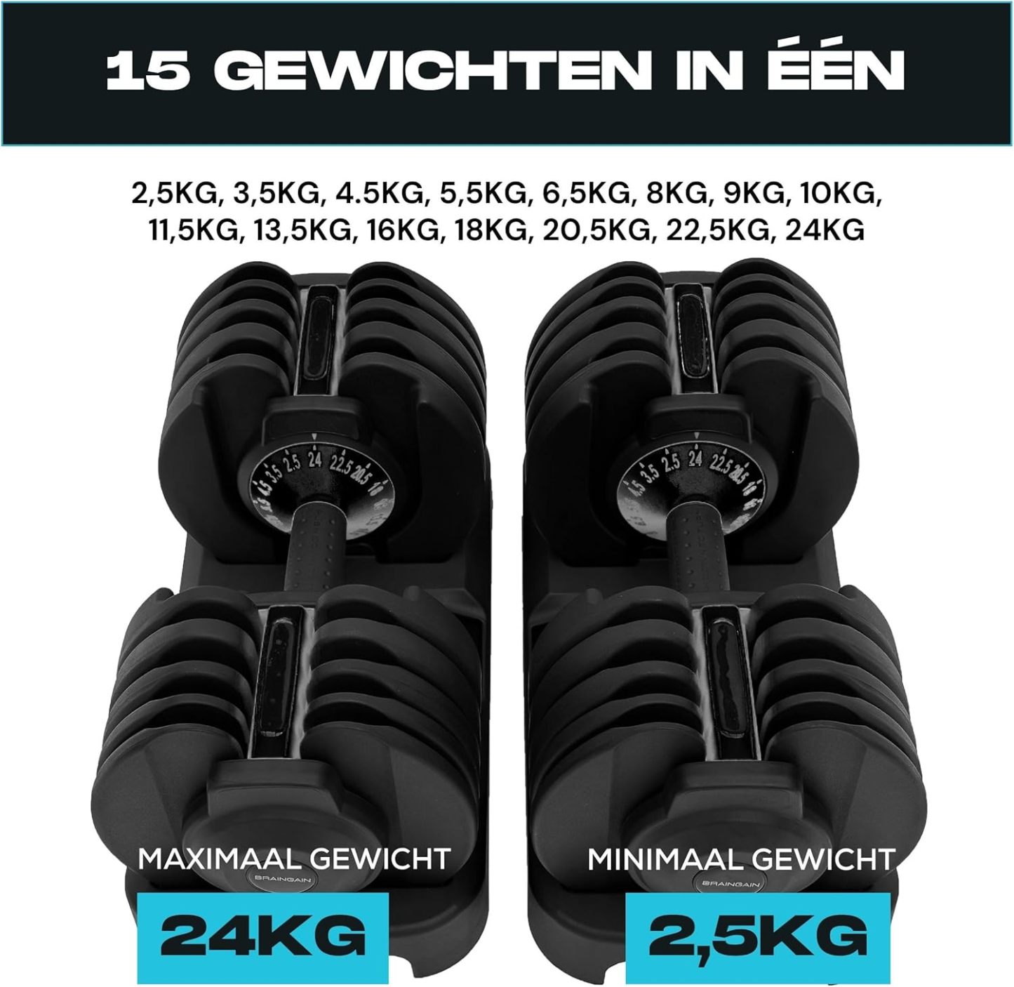 - TRAIN SMARTER: With the 24 kg adjustable dumbbell set from BRAINGAIN you can seamlessly switch between 15 different weights in seconds without having to remove plates or handles. Innovatively designed and tested for quality, these adjustable dumbbells guarantee the highest level of safety while maintaining the training flow between sets, supporting both beginners and professionals.