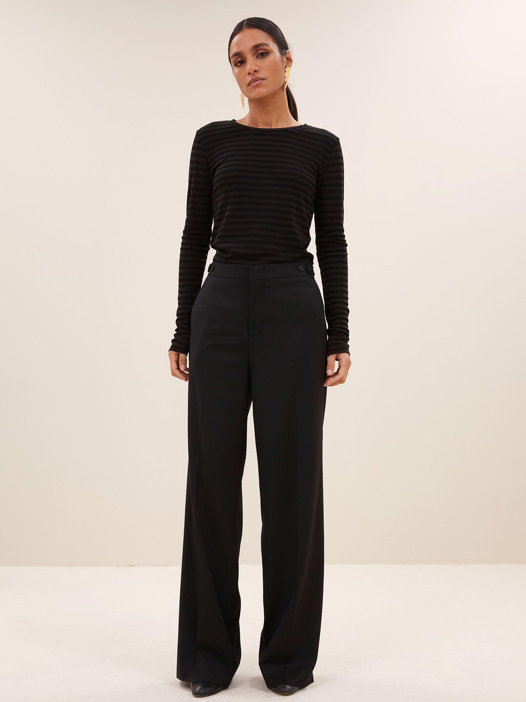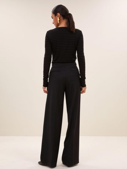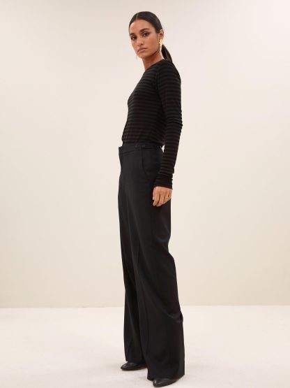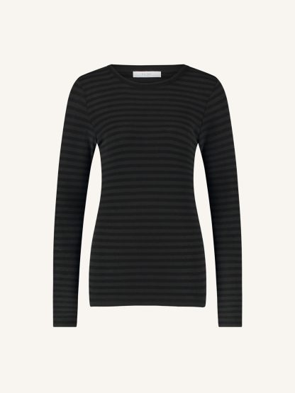 Zwarte longsleeve melange stripe top