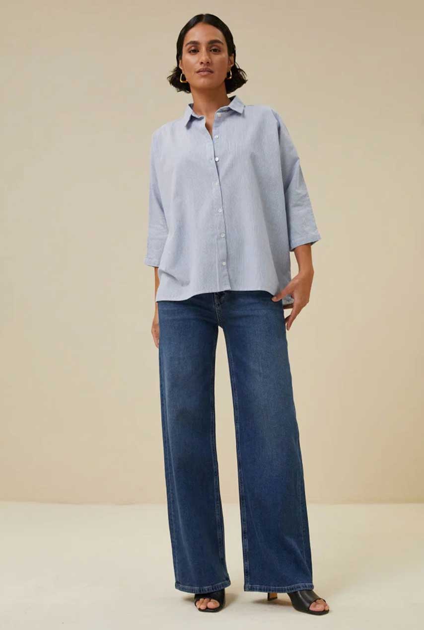 Blauwe blouse norel pin stripe