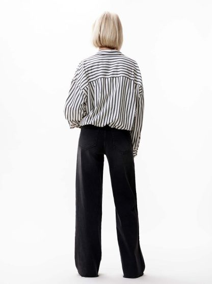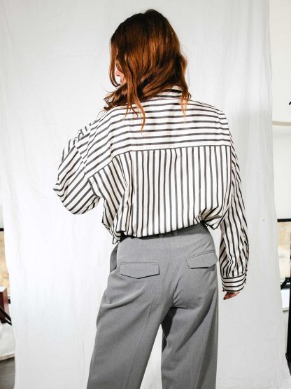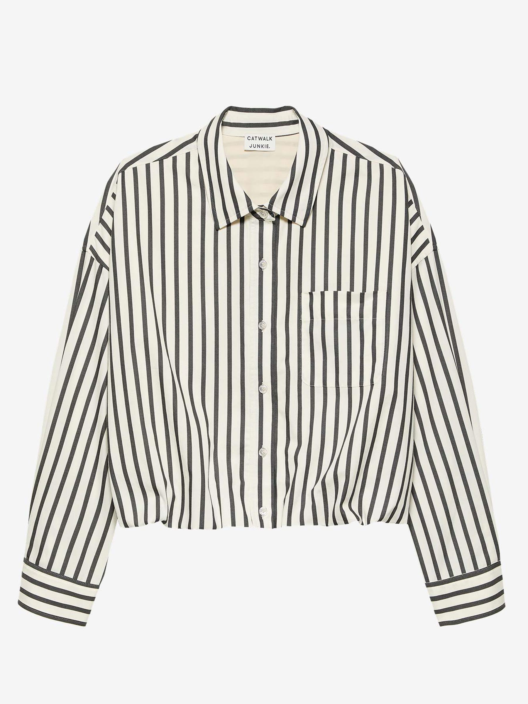 Deze gestreepte blouse van Catwalk Junkie heeft een elastische zoom om een tuck-in effect te creëren! De top is ontworpen met lange mouwen, een knoopsluiting , overhemdkraag en een borstzakje.