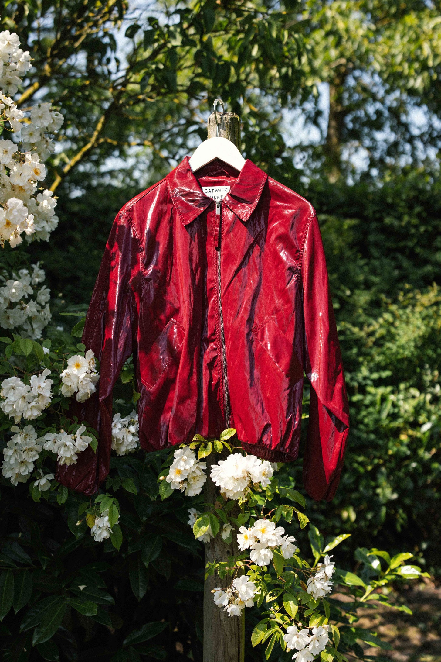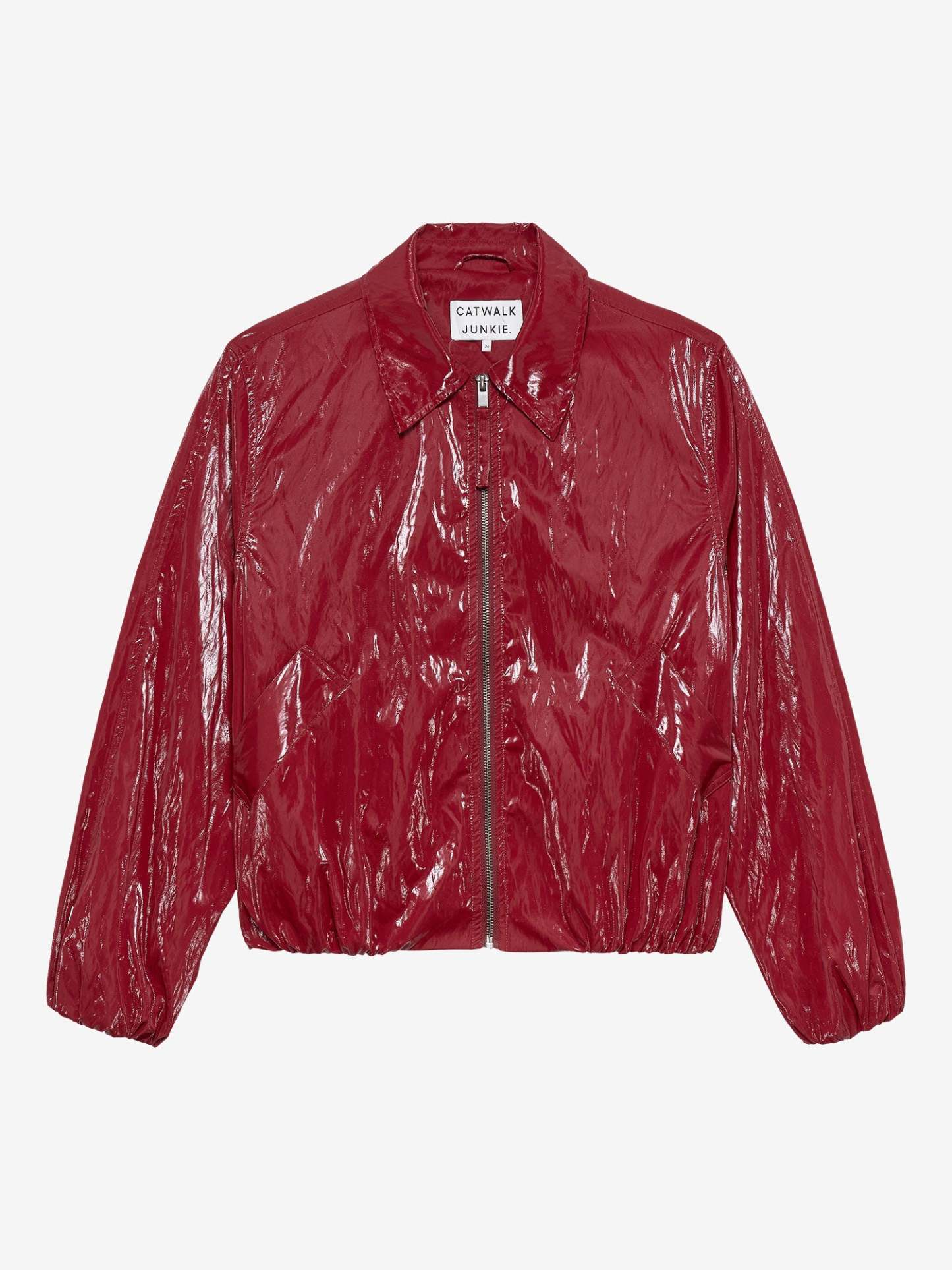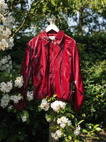Rode lak jas met tuck in effect