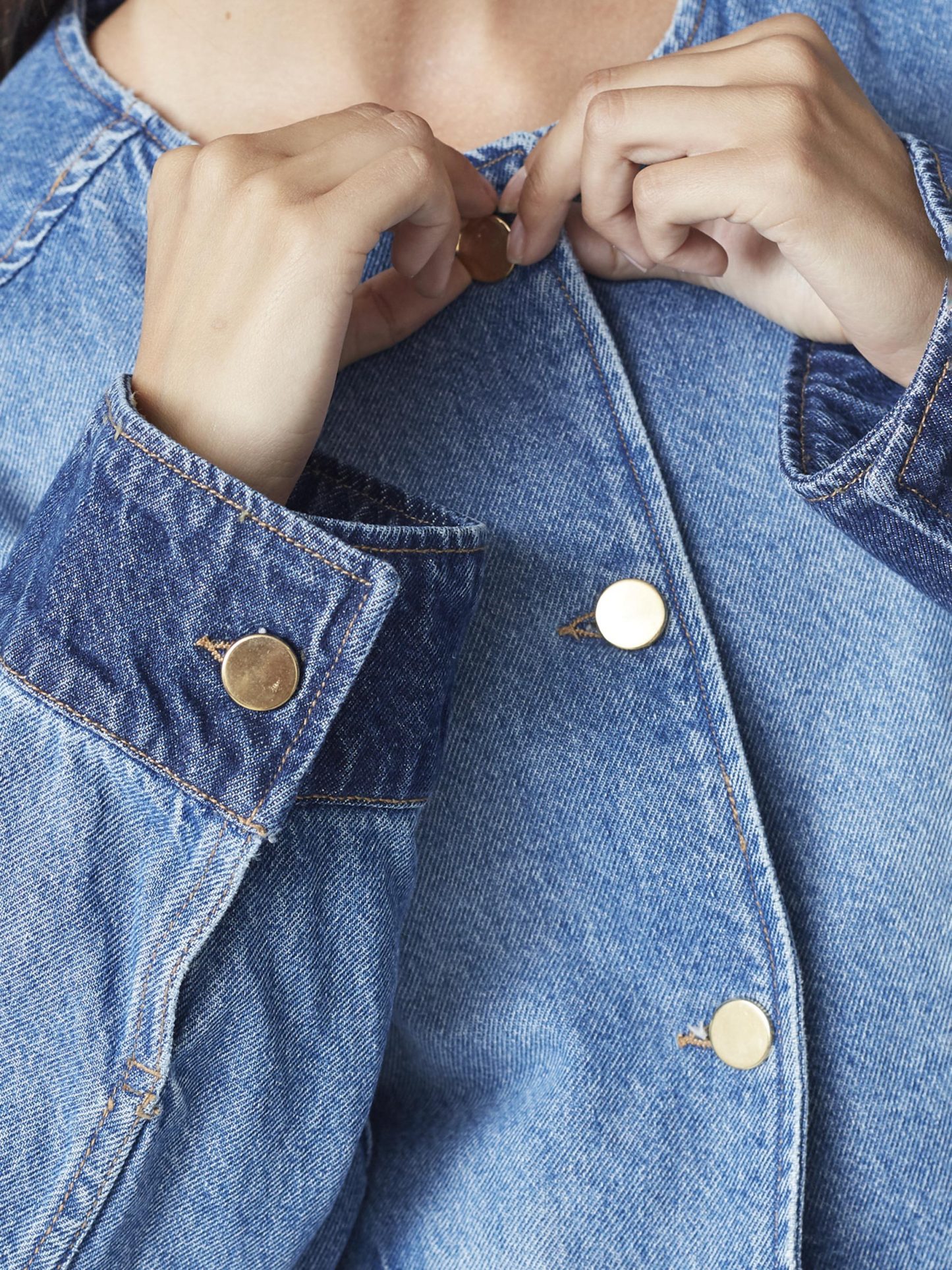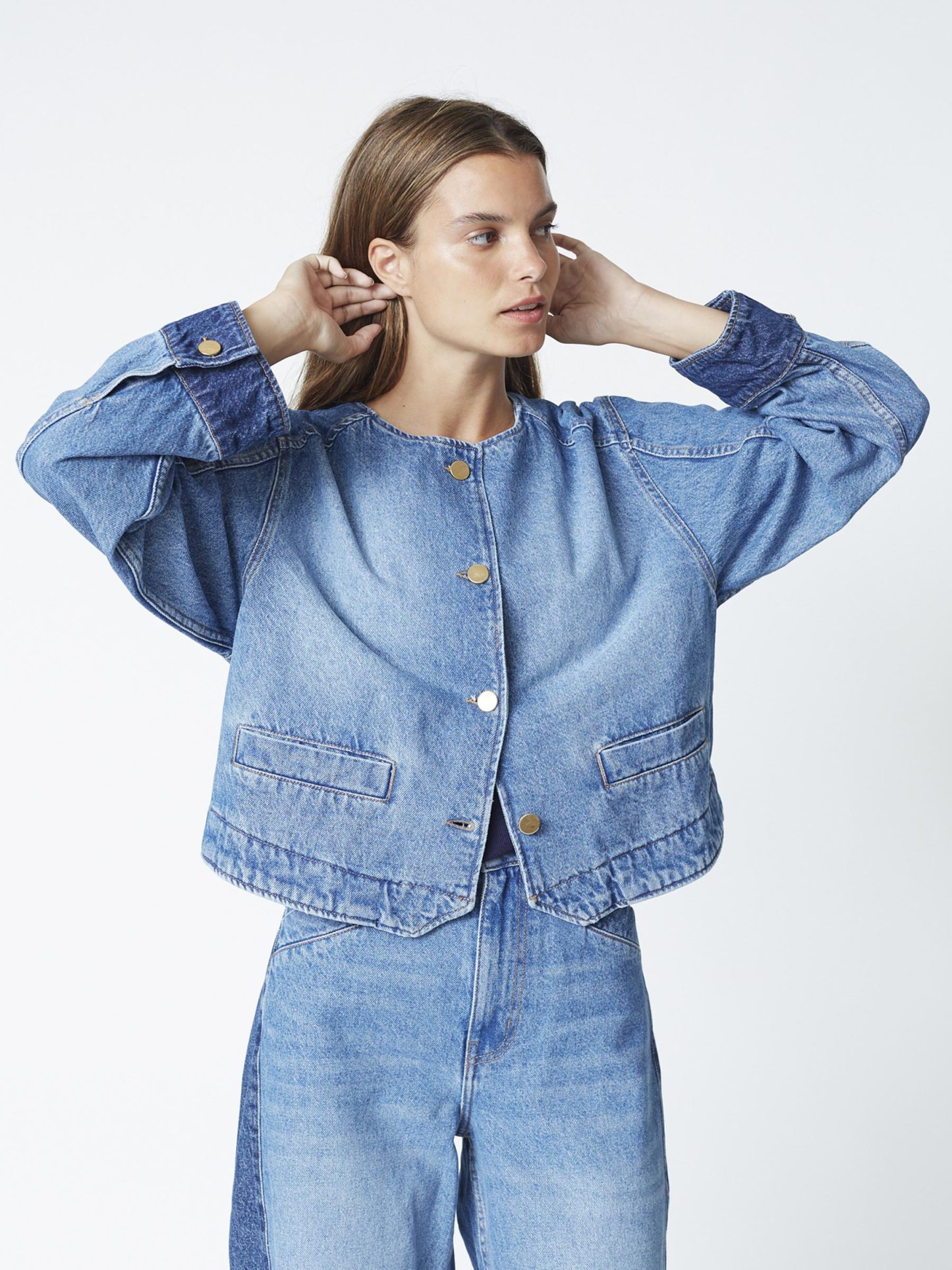 Deze blauwe denim jacket van Co’Couture is zo’n item dat elke outfit meteen cool maakt. Kort model en perfect om overal overheen te gooien. Draag deze jas op de bijpassende broek, of op een andere broek uit de collectie om je outfit compleet te maken