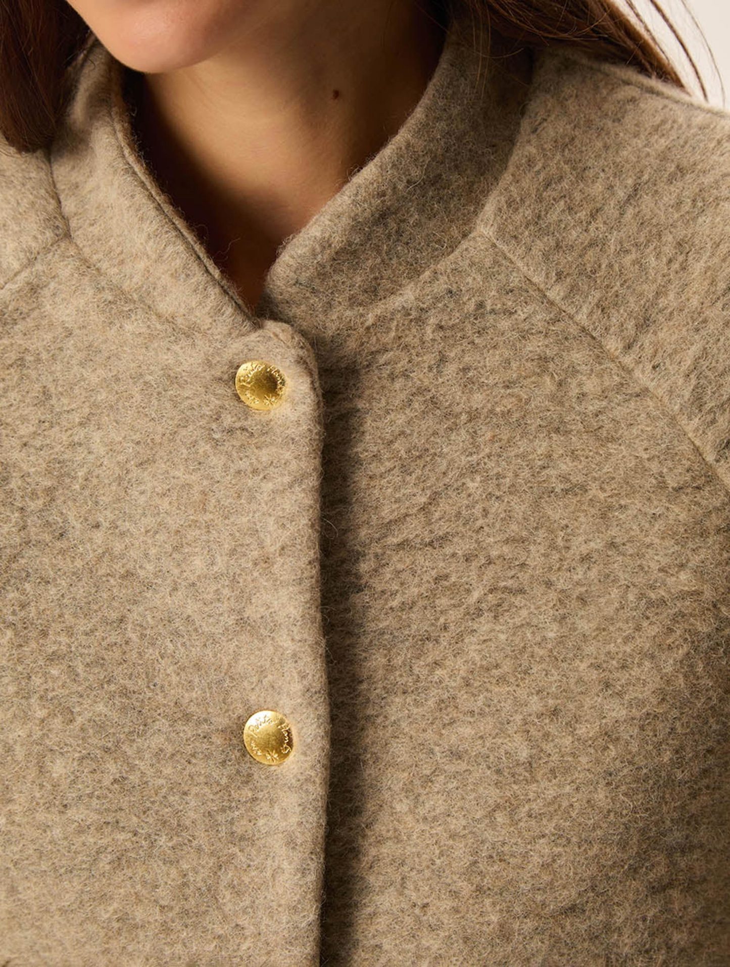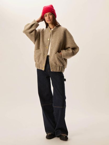 Dit beige teddyjack van Des Petits Hauts is perfect voor dagen waarop je er leuk uit wilt zien én lekker warm wilt blijven. Het zachte, wollige materiaal en de goudkleurige knopen geven een luxe uitstraling, terwijl de relaxte pasvorm zorgt voor een nonchalante look.