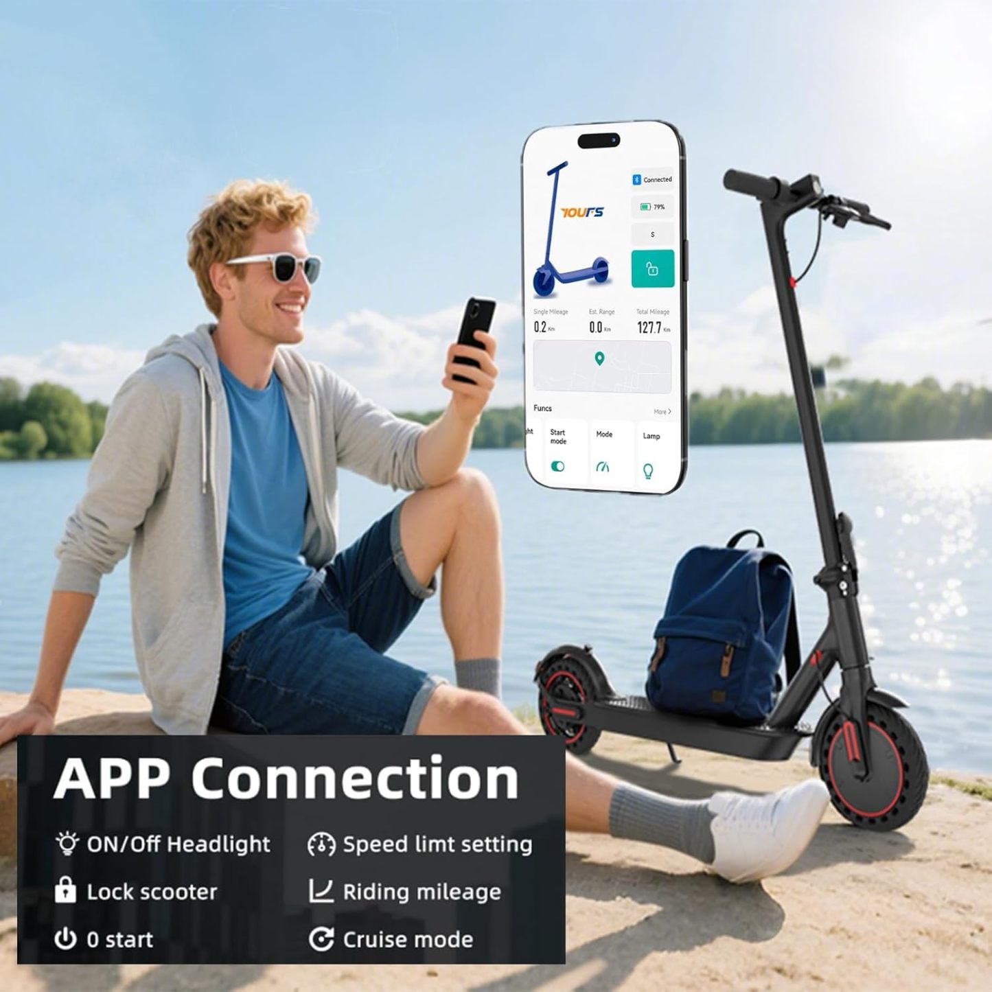 Electric Scooter Foldable Adult 10.4 Ah Battery, Range 25-35 km, App Connection
