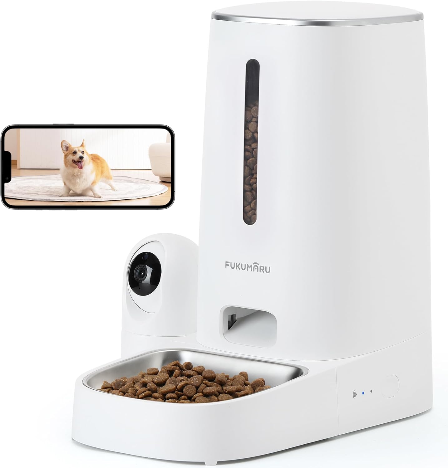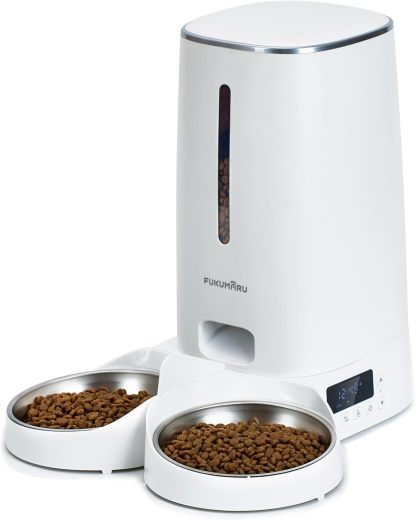 FUKUMARU Automatic Cat Feeder with WiFi, Food Dispenser for Dogs/Cats with 4 Litres Capacity with Two Bowls and Automatic Feeding Program, Battery Operated and