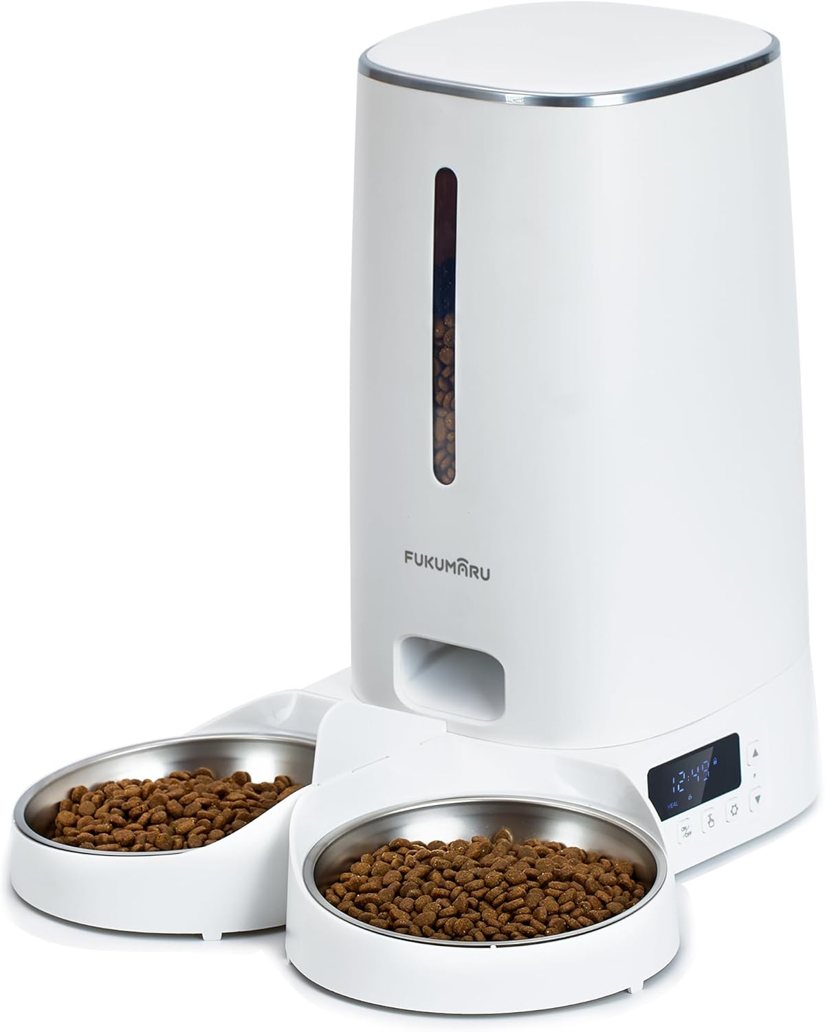 FUKUMARU Automatic Cat Feeder with 4L Capacity, WiFi Connection and Double Bowl, Automatic Feeder for Cats/Dogs with Adapted Schedule, Battery Operated and Power Connection, White, Cat Dog Feeder Bowl, 4 Litres