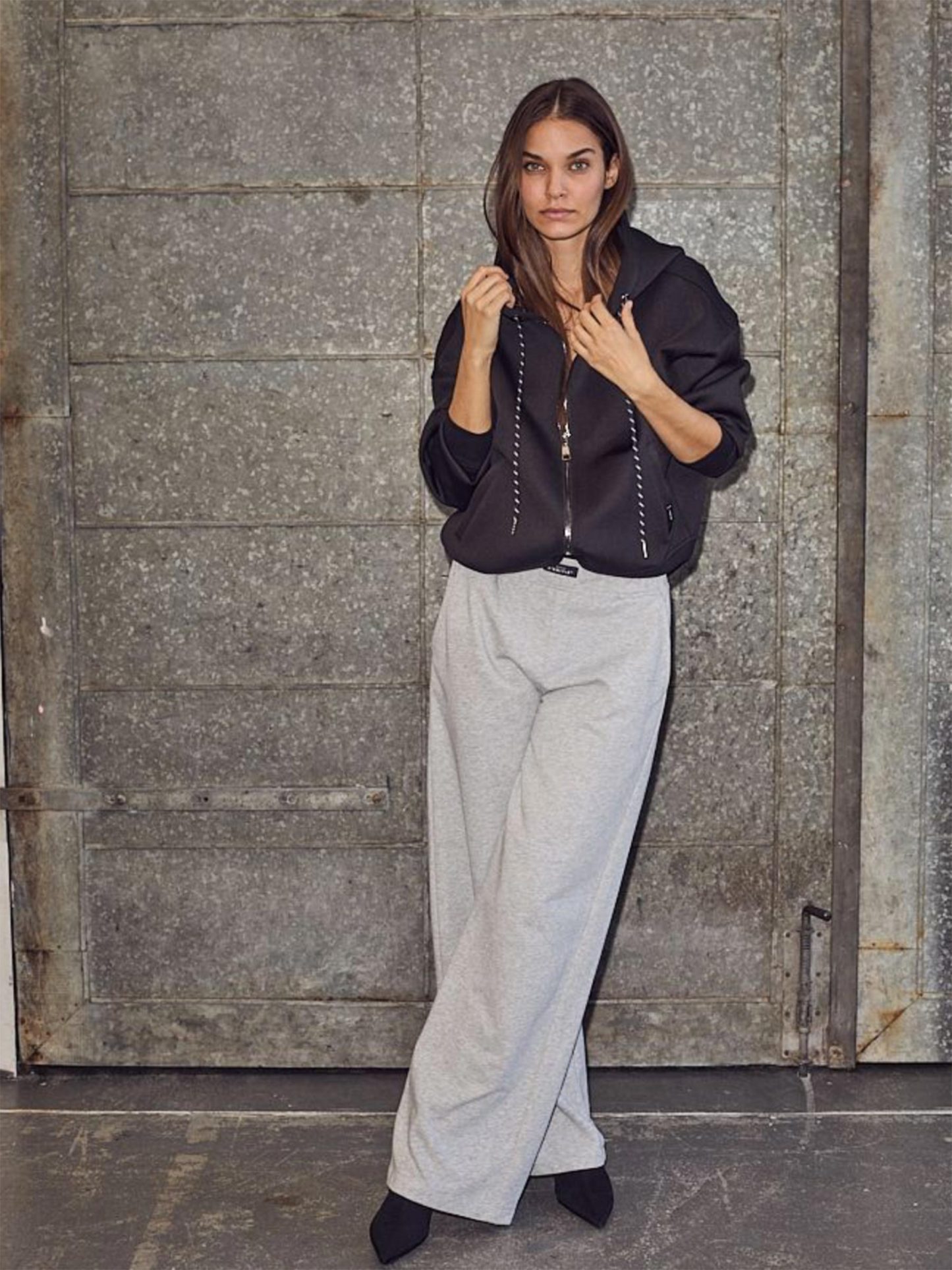 Grijze wide leg broek loose tall pants