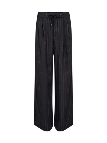 Deze donkergrijze pantalon van Haute L’Amitié combineert comfort met een moderne look. De krijtstreep en wijde pijpen geven hem een tijdloos karakter, terwijl het trekkoord in de taille zorgt voor een relaxte fit. Perfect met een basic tee of oversized blouse voor een effortless city look.