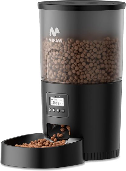 IMIPAW Automatic Cat Feeder Dispensers, 5L Cat Feeder With Timer, Programmable Serving Size, 1-6 Meals Per Day (Black, 5L)