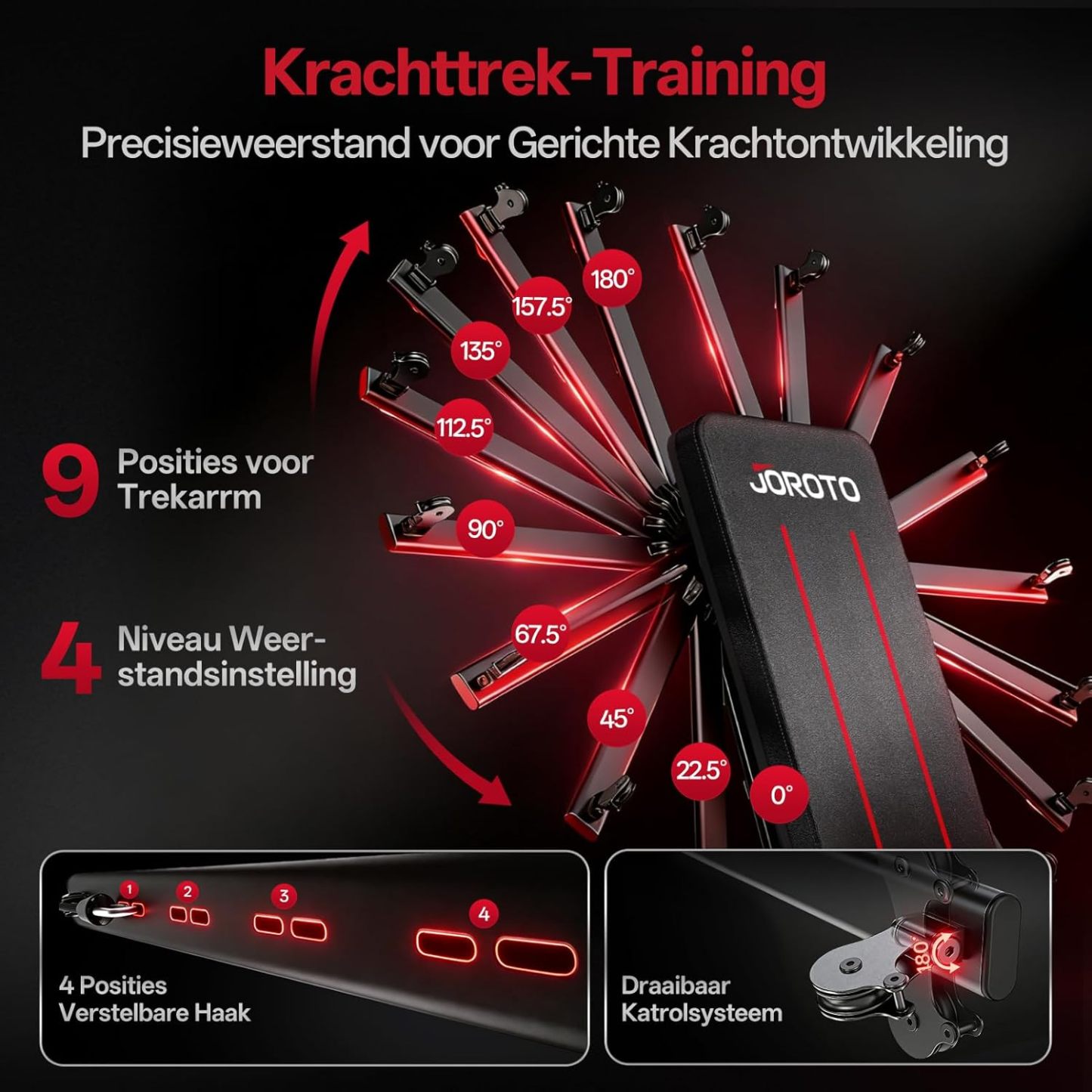 - 9-POSITIONS TREKARM WITH 4-LEVEL RESISTANCE: Master every corner of your workout with this advanced training bench. The 9-position adjustable pull arm provides fixed training angles, while each pulley rotates 180° horizontally to precisely target resistance. Combined with a 4-level quick adjustment hook for chest, back, arms and core – with professional resistance. Built for stability and versatile enough for the home gym.