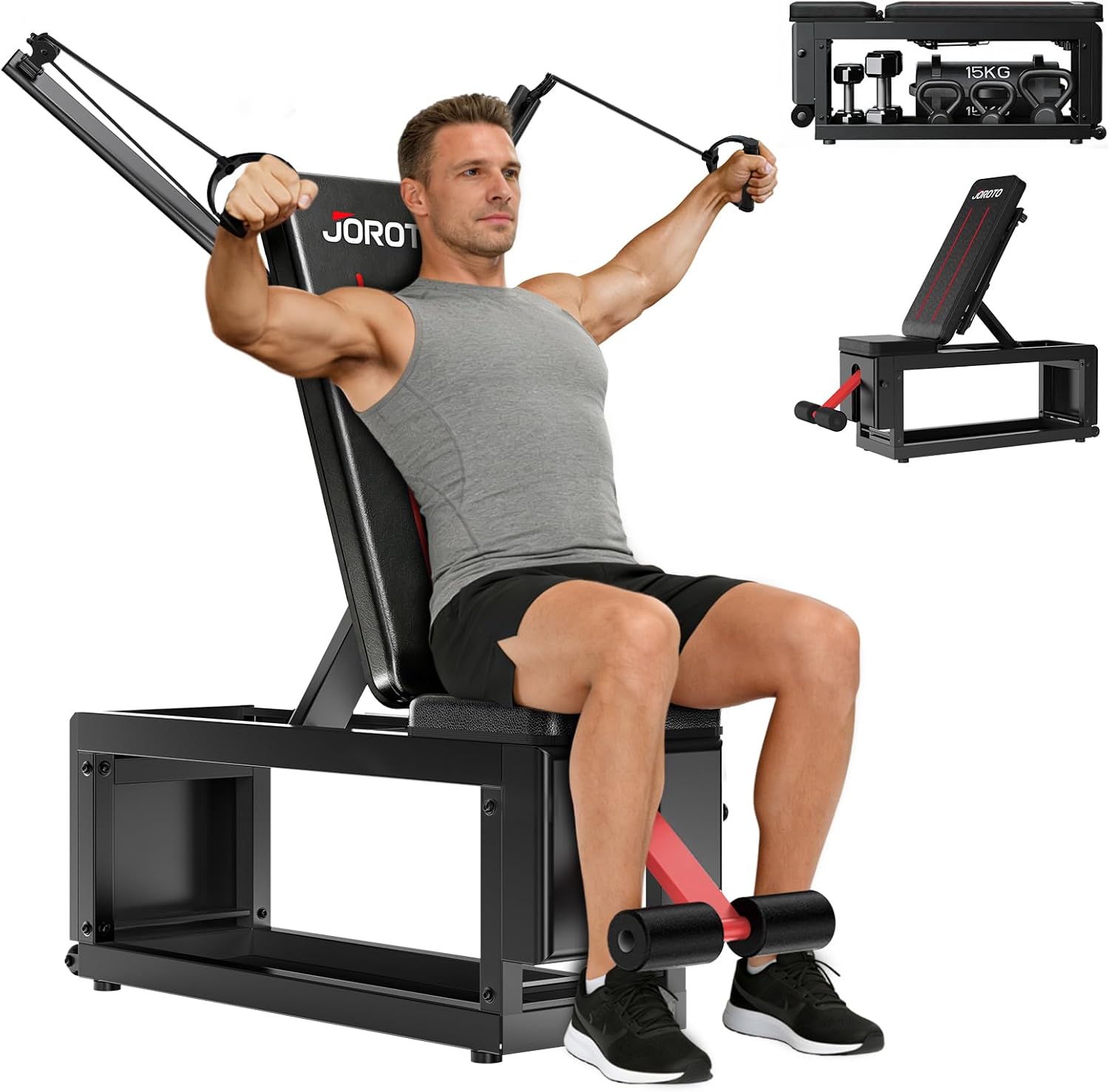 JOROTO MD85 Adjustable Weight Bench with Built-in Storage, Load Capacity 450kg Multifunction Weight Bench, 9 Positions Pull Arm and 7 Positions Backrest Training Bench for Body Training Home
