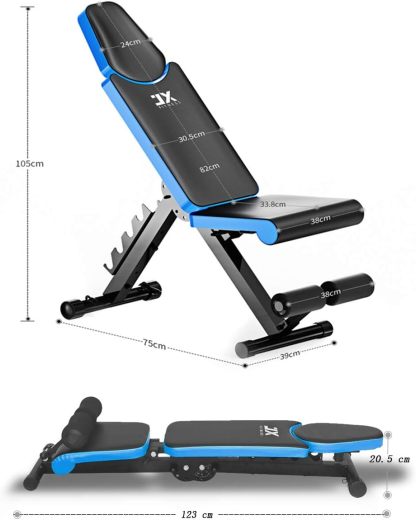 JX Fitness Weight Bench, Foldable, Multifunctional Training Bench, Fitness Bench, Exercise Bench for Bicep Training and Back Training, Leg Holder for Abdominal Training
