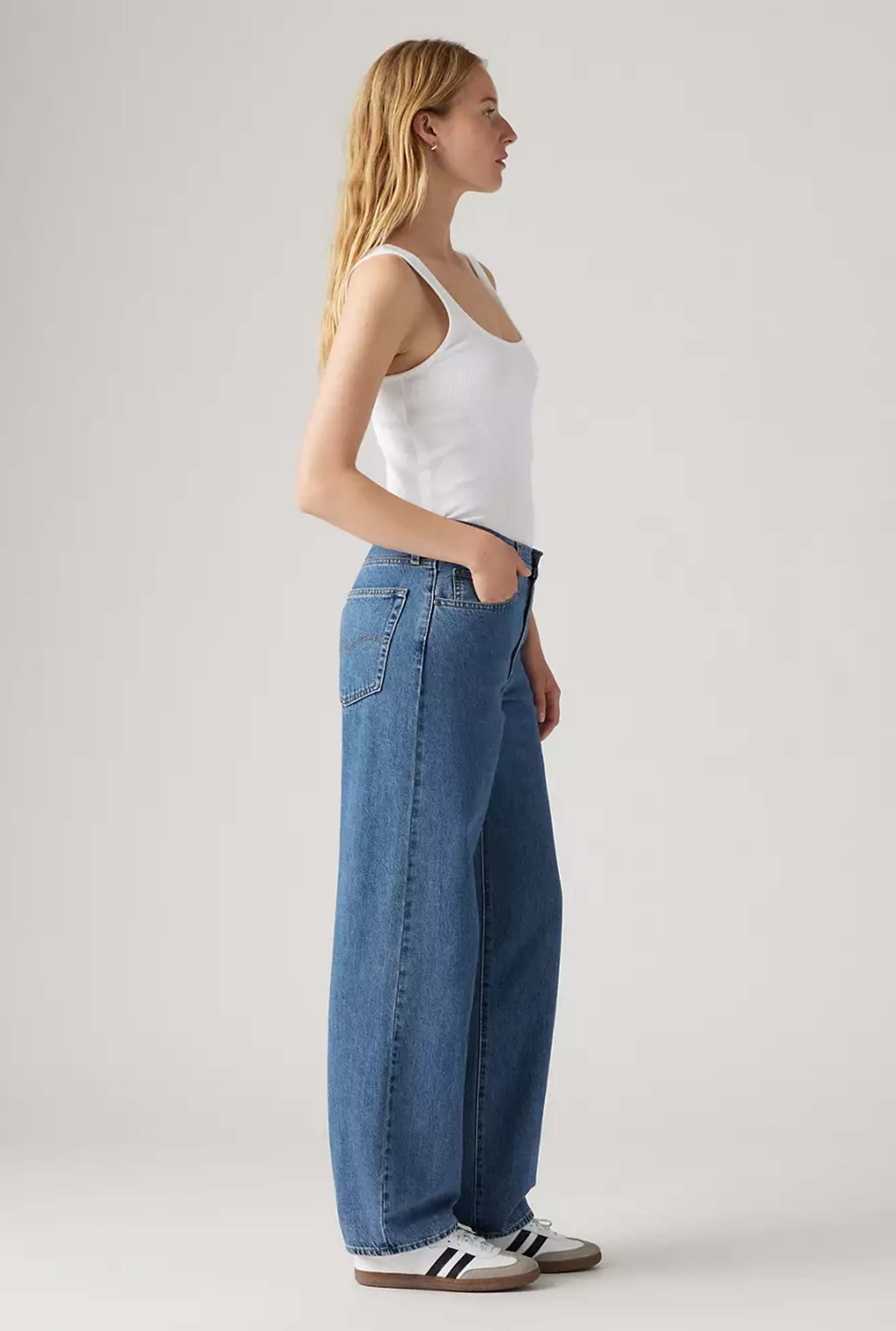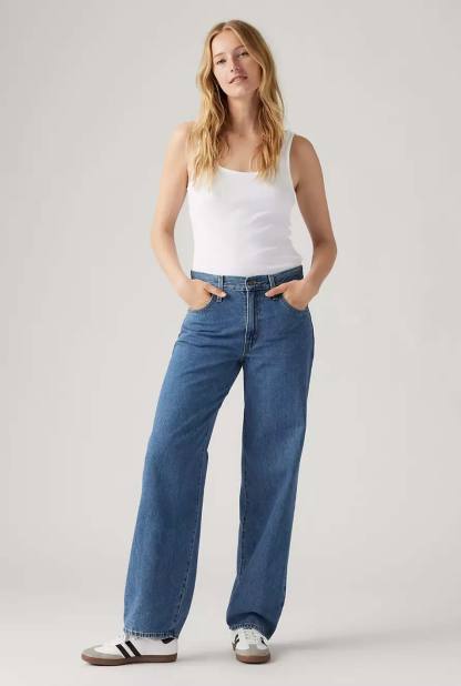 Deze blauwe baggy jeans van Levi's wordt gegarandeerd je nieuwe favoriet! Dit model, de 'baggy dad' is geïnspireerd op de manier waarop onze vaders hun jeans droegen, maar dan wijder en gemaakt van een prettige mix van katoen en lyocell. Deze broek heeft een middelhoge taille en valt lekker nonchalant, maar blijft zeer flatterend. Houd er rekening mee dat de jeans kan uitlopen. De broek valt ruim; voor een echte relaxed look kies je je eigen maat, maar als je hem liever draagt zoals het model op de foto, ga dan voor een maatje kleiner. Naam: A3494-0013