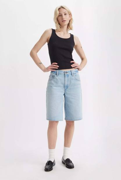 Deze licht blauwe jorts van Levi’s zijn perfect voor wie houdt van comfort met een relaxte look. Dankzij de iets langere lengte draag je ze moeiteloos naar een festival of gewoon op een casual dag. Style de broek met een cropped top of oversized blouse en je bent good to go. Als je twijfelt tussen twee maten, adviseren wij de kleinste maat!