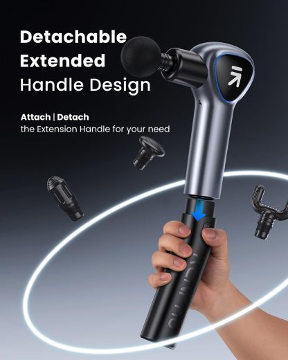- Detachable Extension Handle: Ergonomic Design Non-slip Handle Massage Gun Deep Tissue can effortlessly target your back and other hard-to-reach places for a relaxing massage by yourself than a regular massage gun.