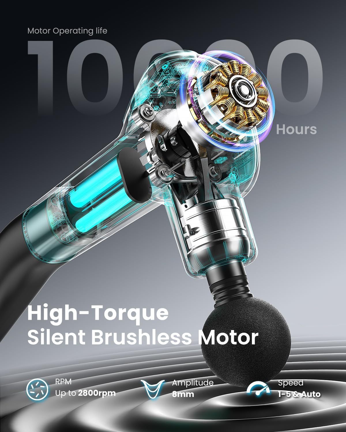 - Powerful Percussion Massage Gun: We are committed to offering a more refined and intense sports massage gun for back pain, RENPHO used the industry's best silent brushless motor (<45dB), which has high penetration, 8mm massage depth and better relief of muscle fatigue and pain.