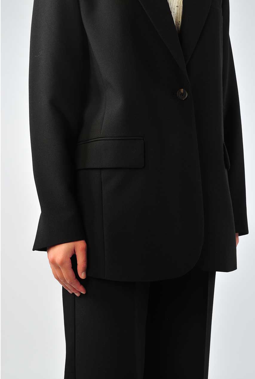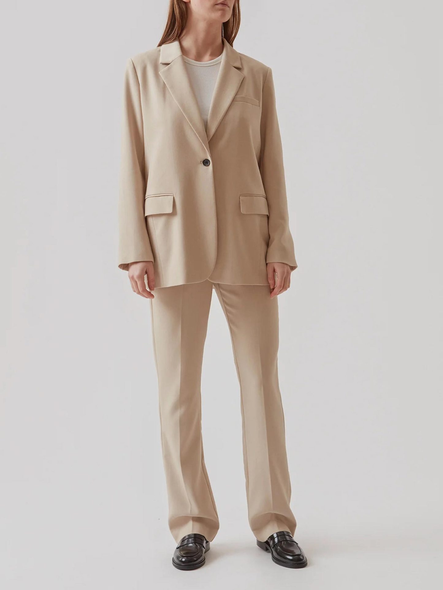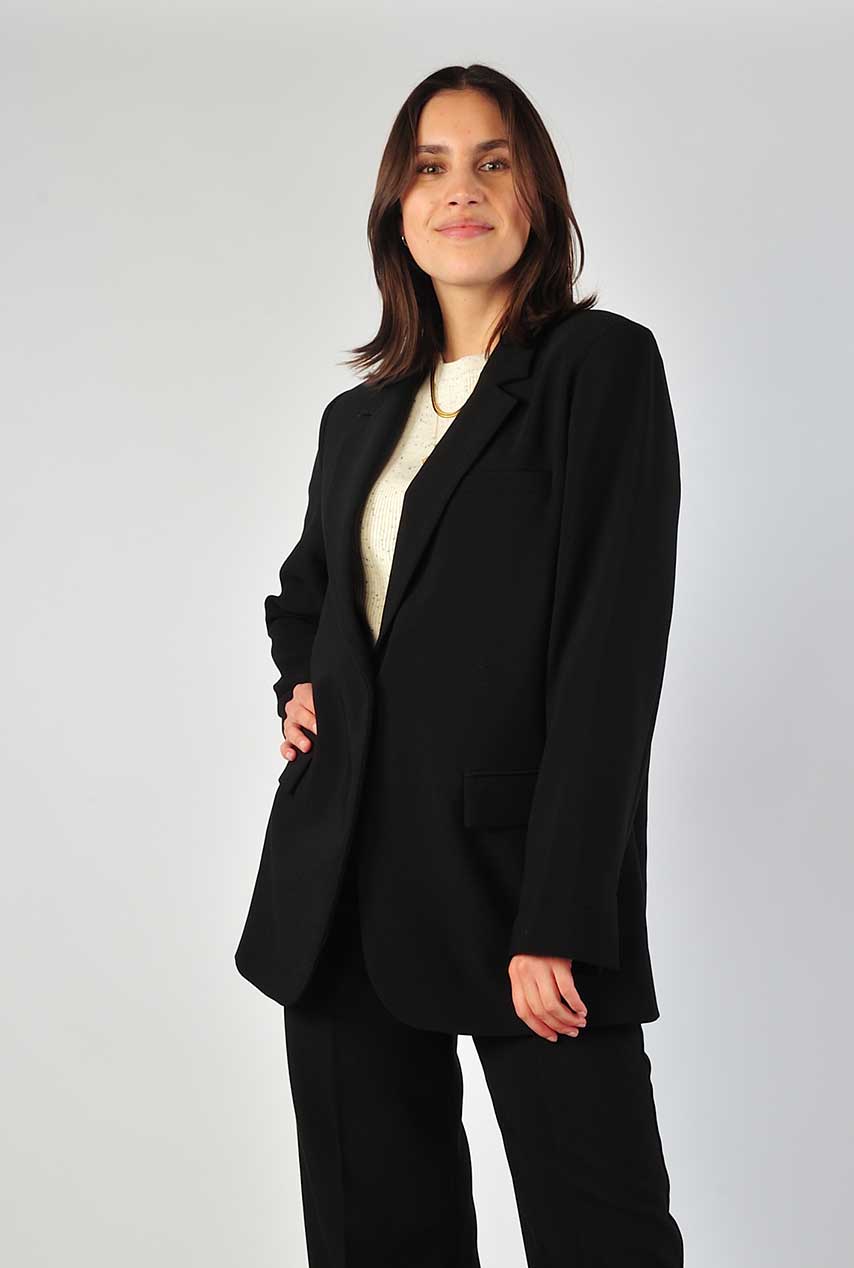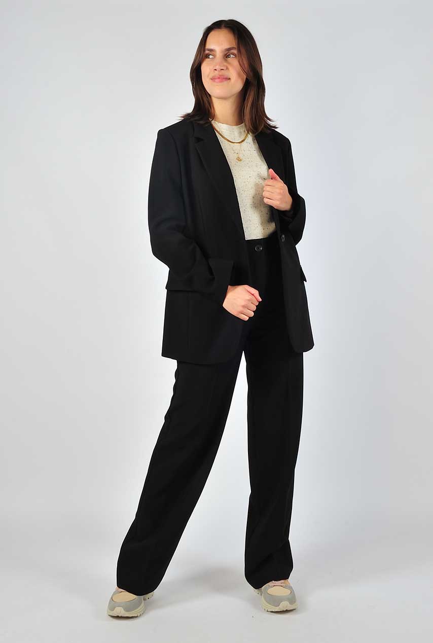 Deze fijne basis blazer van Modström is zo’n item dat elke outfit net wat krachtiger maakt. De rechte fit, klassieke revers en enkele knoop zorgen voor een tijdloos silhouet en de zakken geven een nonchalant randje. Draag hem op de bijpassende pantalon of juist casual met jeans en sneakers.
