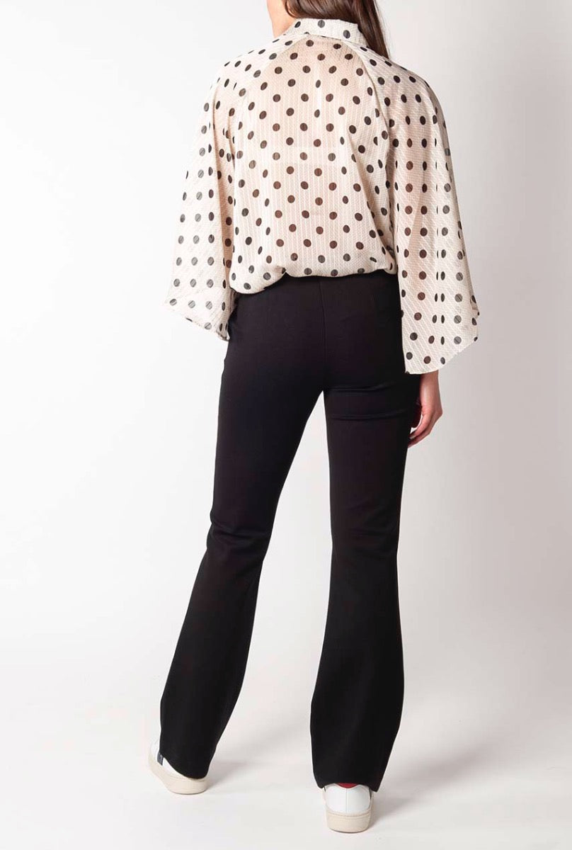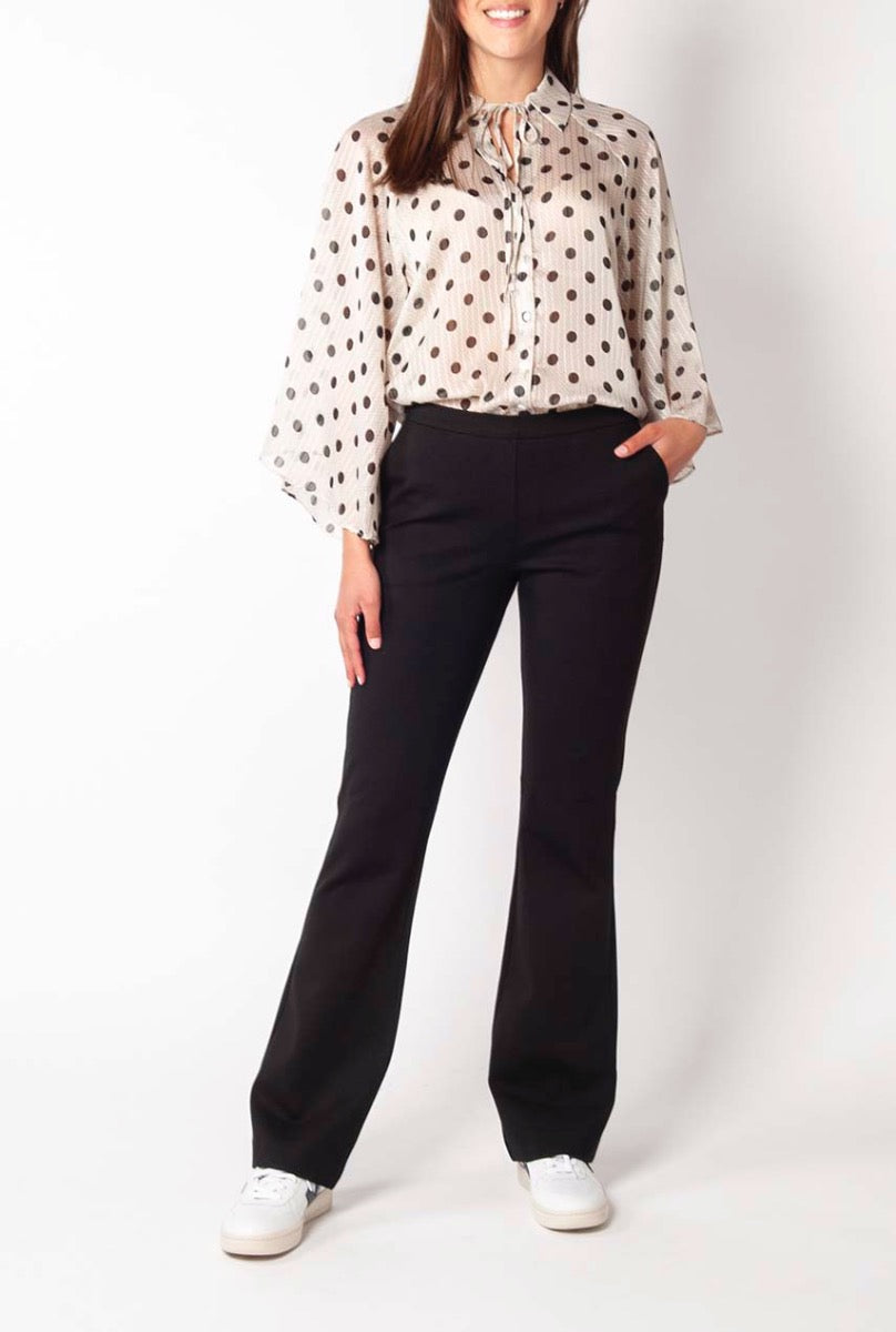 Deze flared broek van Modström zit als gegoten dankzij de zachte materialenmix met stretch. Elegant, comfortabel en makkelijk te stylen.