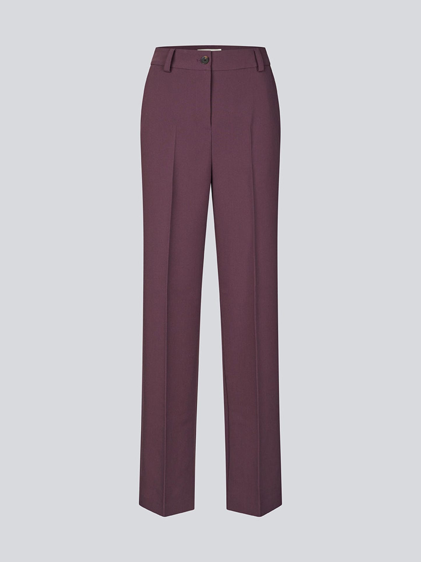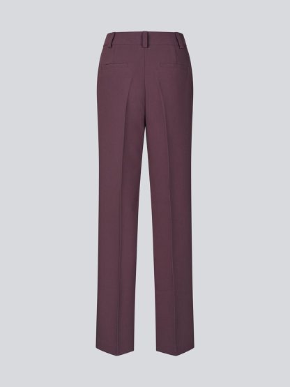 Deze bordeaux pantalon van Modström geeft je look meteen een chique touch zonder dat het te netjes wordt. De rechte wijde pijpen met persvouwen vallen mooi langs het been en maken deze broek perfect voor zowel een diner als een drukke werkdag. Draag er een top of knit op en je outfit staat in een keer goed.
