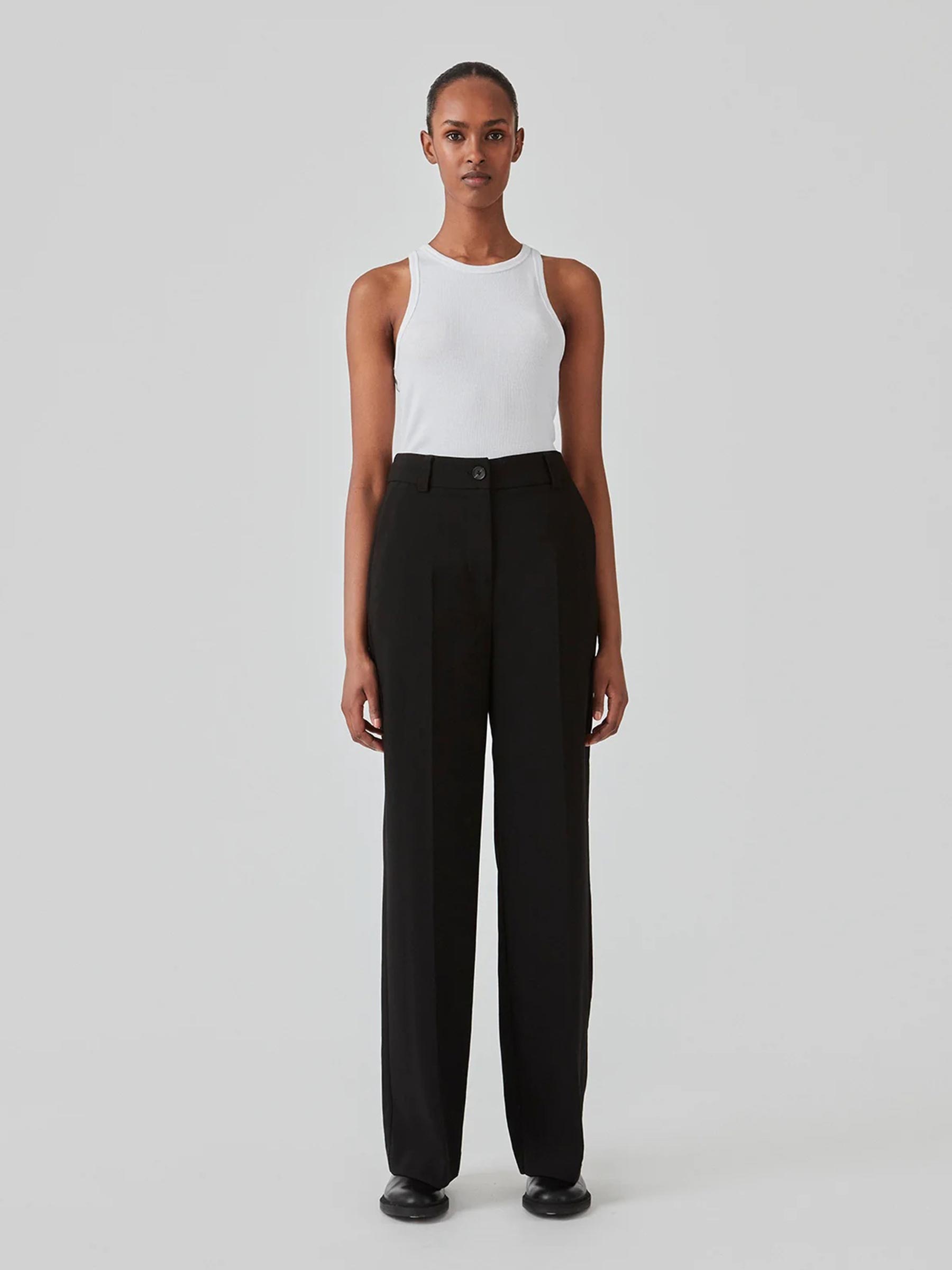 Deze basis pantalon van Modström is de perfecte mix van formeel en comfortabel. Met de hoge taille, rechte pijpen en persvouw heeft de broek een moderne look die je zowel zakelijk als casual kan dragen. Combineer met de bijpassende blazer voor een complete suit set of style hem los met een knit en sneakers.