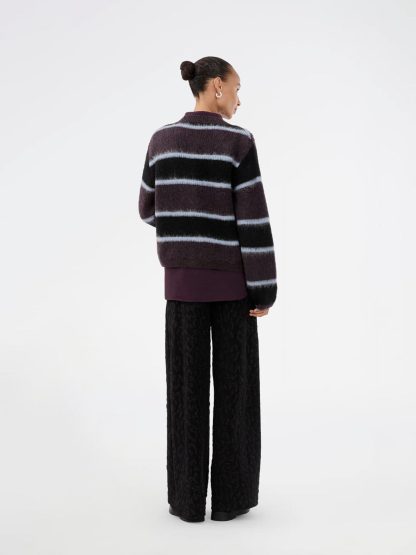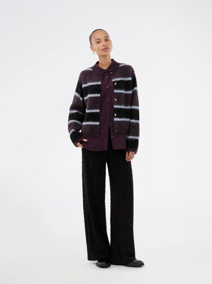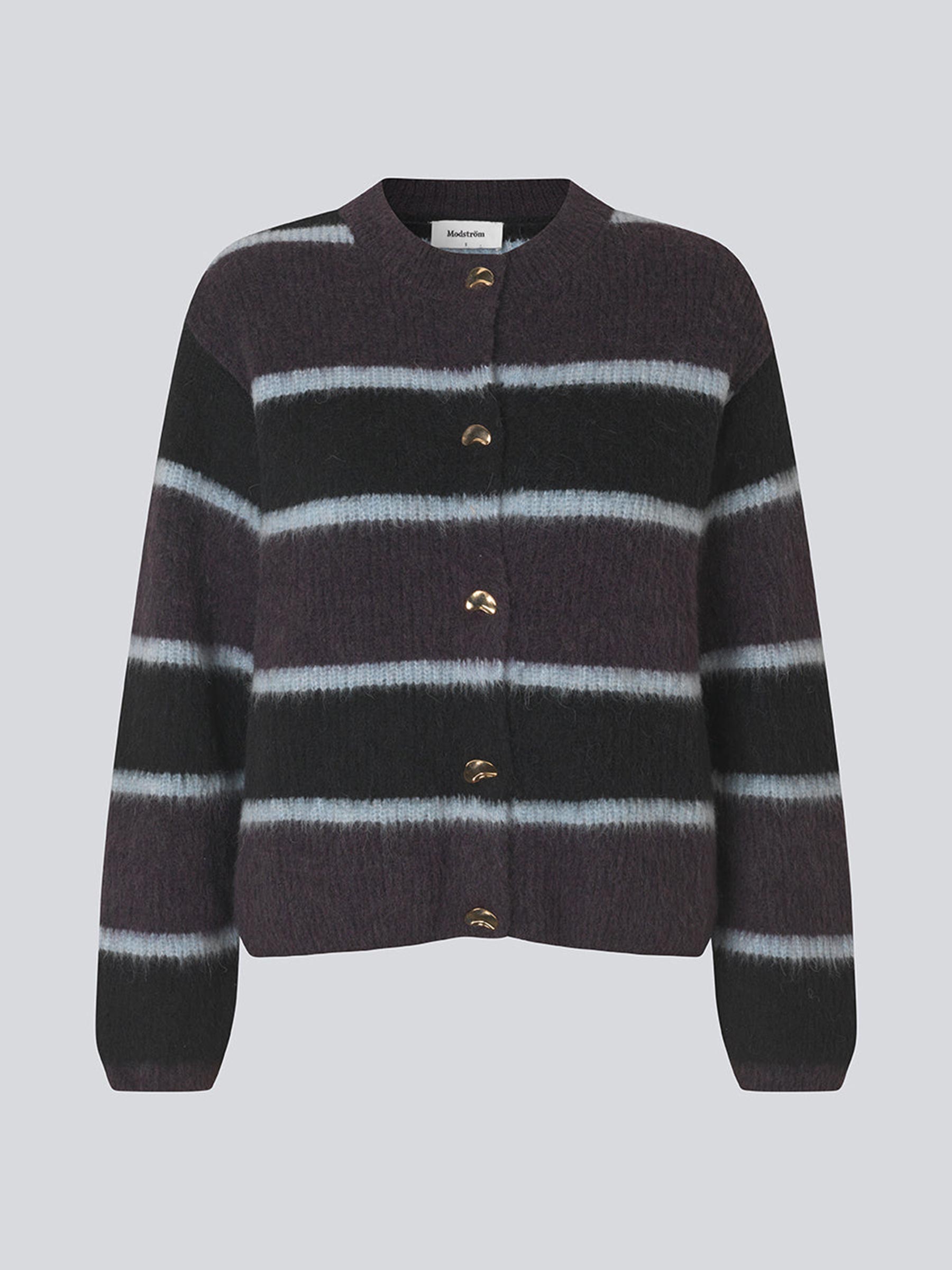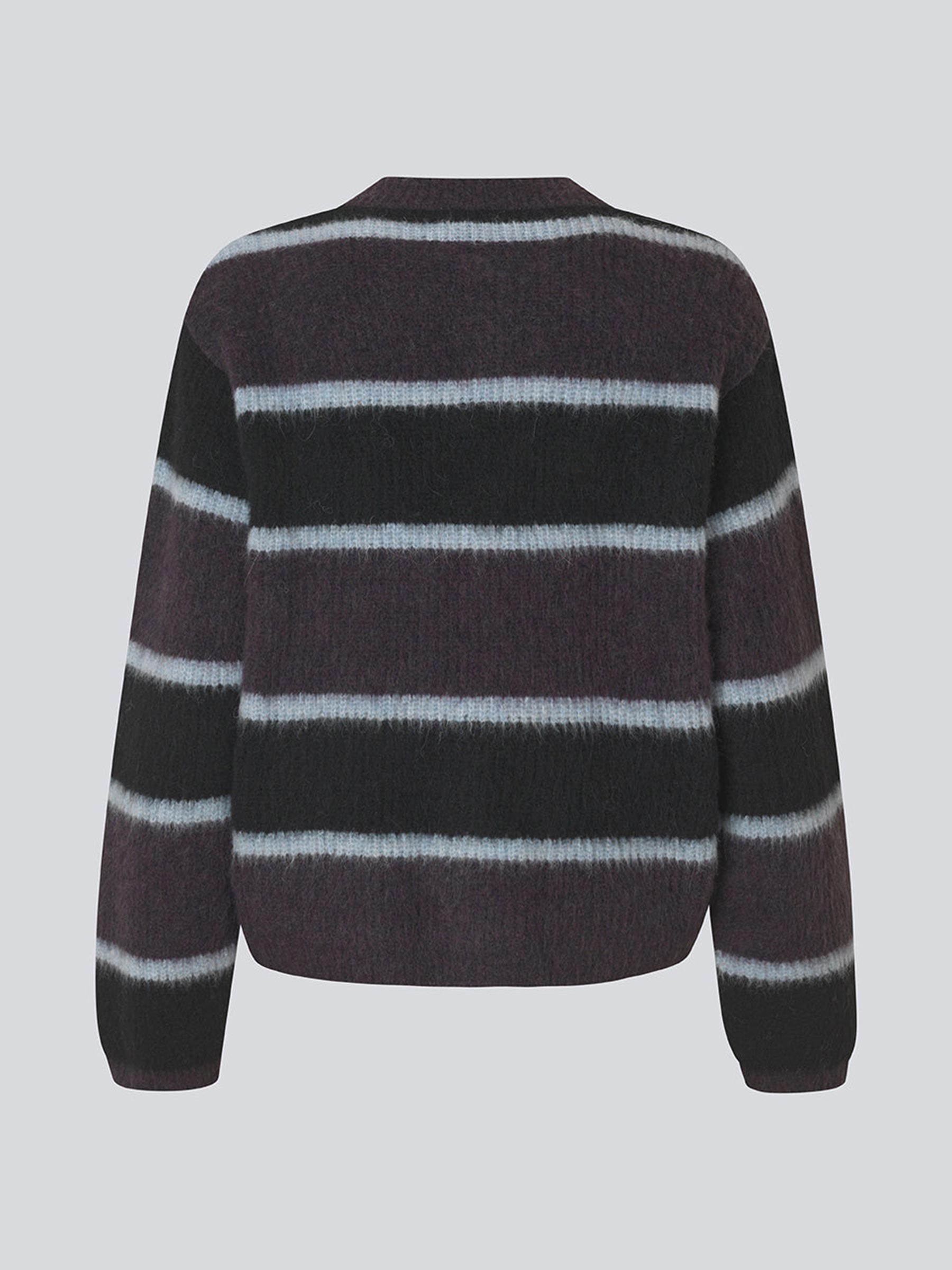 Deze donkerpaarse cardigan van Modström is zo’n warme favoriet waar je meteen blij van wordt. De brede strepen en de zachte wolmix geven ’m een warme uitstraling en maken ’m ideaal voor frisse dagen. Gooi ’m over een blouse of basic top en je outfit staat gelijk.