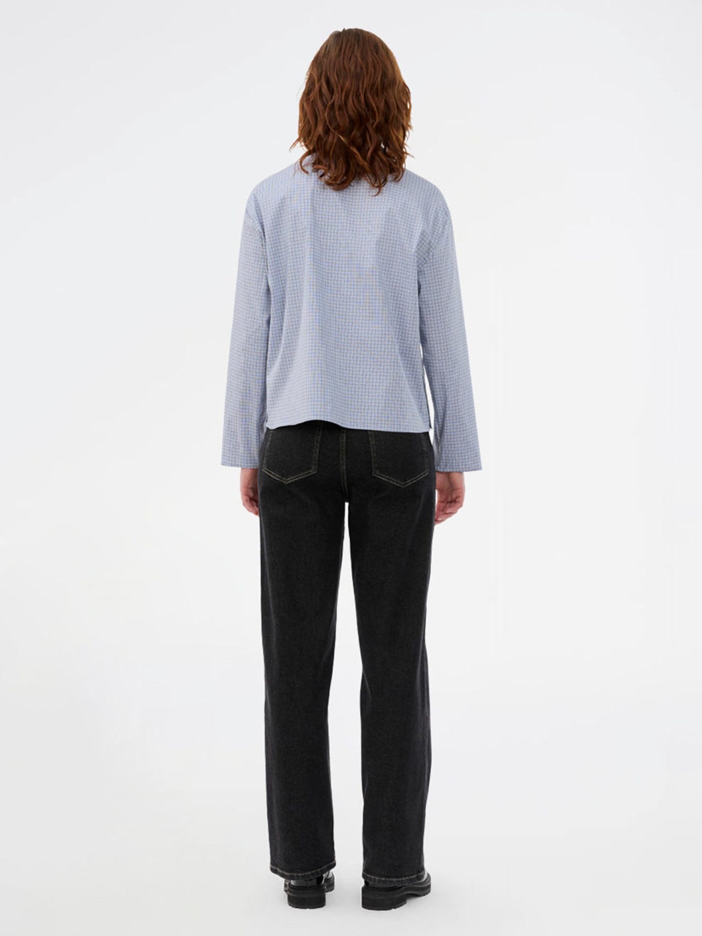 - Blauw geruite blouse
