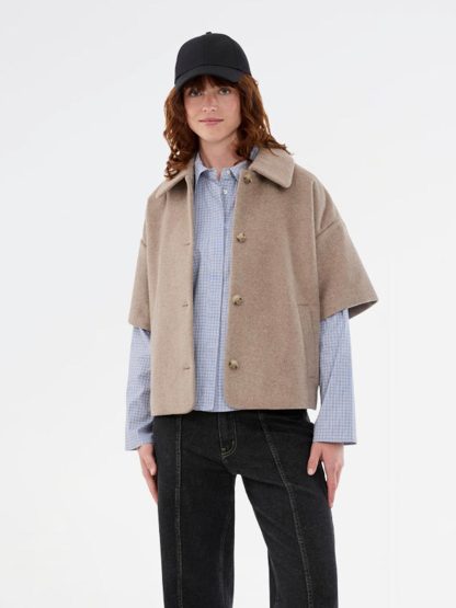 Dit beige cape jasje van Modström is perfect voor dagen waarop je outfit net wat extra mag hebben. De korte cape fit en zachte kleur maken dit item super leuk om te layeren over een blouse of knit en je bent meteen ready to go!