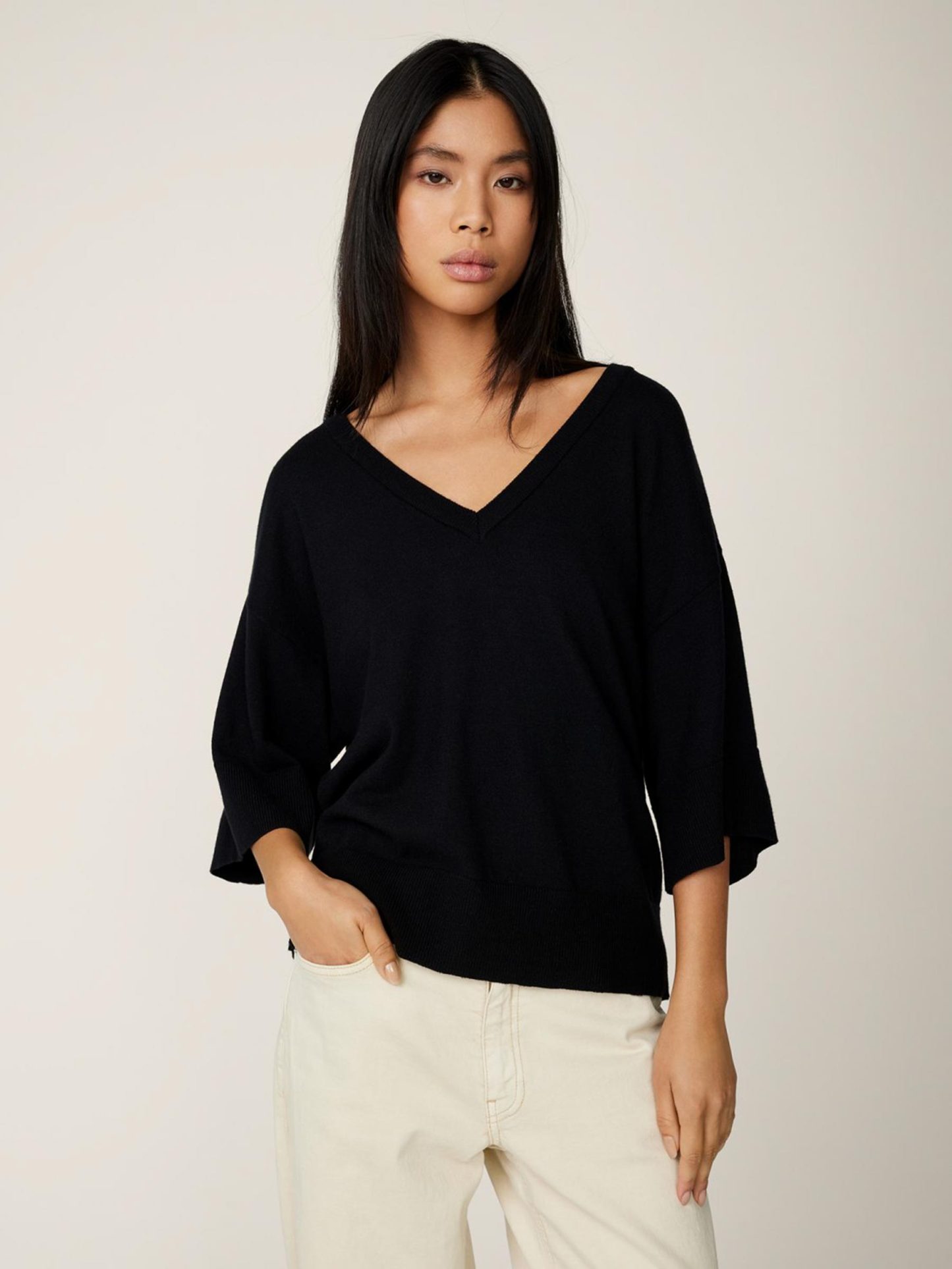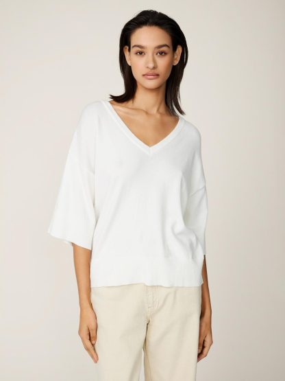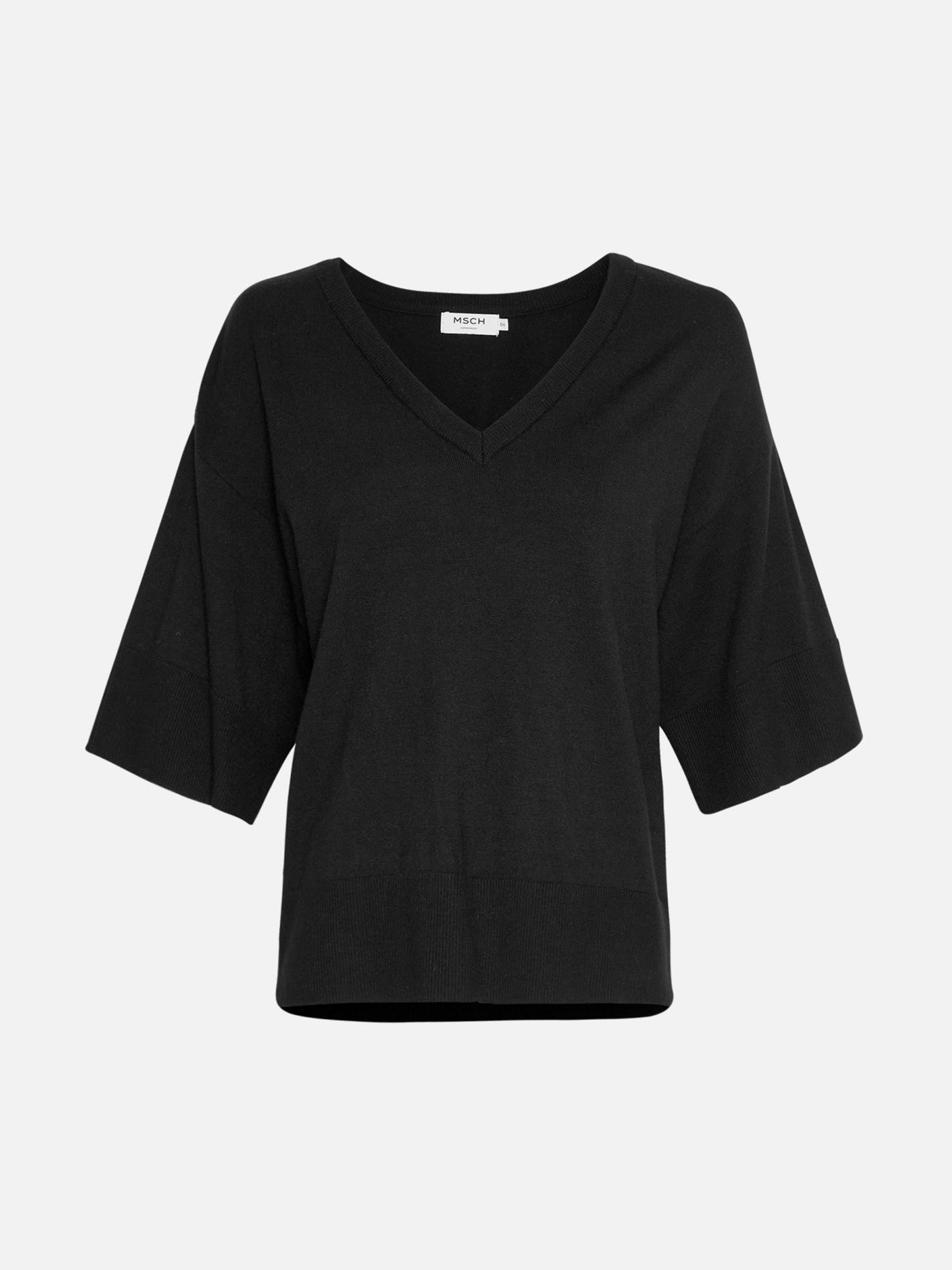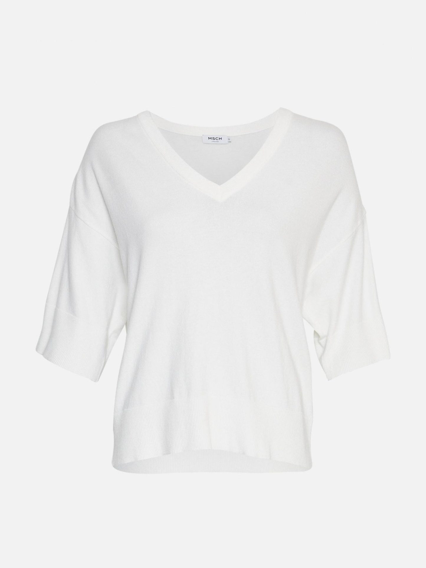 Deze zachte trui van het Deense merk MSCH Copenhagen is de perfecte keuze voor de zomer! De pullover heeft namelijk een ruime pasvorm met halflange mouwen en een diepe v-hals. De stof is onder andere gemaakt van ecovero viscose. Dit is viscose die gebruikt maakt van grondstoffen die op een verantwoordelijke manier zijn vervaardigd.