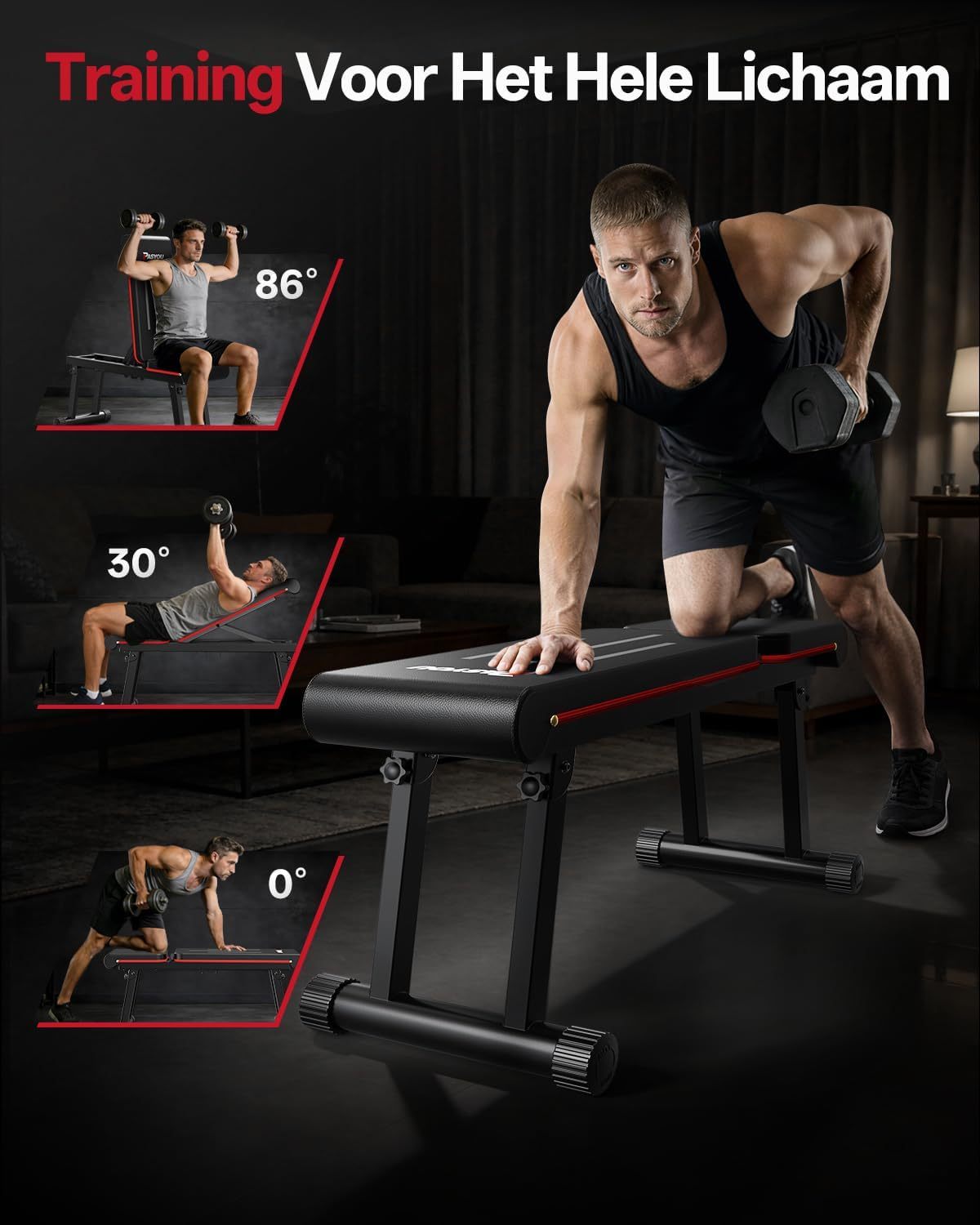- MULTIFUNCTIONELE OEFENBANK: Deze opvouwbare fitnessbank is perfect voor bankdrukken, dumbbelltrainingen, core-oefeningen en diverse krachttrainingsoefeningen voor alle belangrijke spiergroepen. Deze opvouwbare halterbank is geschikt voor zowel beginners als fitnessliefhebbers en stelt je in staat om een evenwichtig lichaam op te bouwen en trainingsresultaten te behalen, thuis of in de sportschool