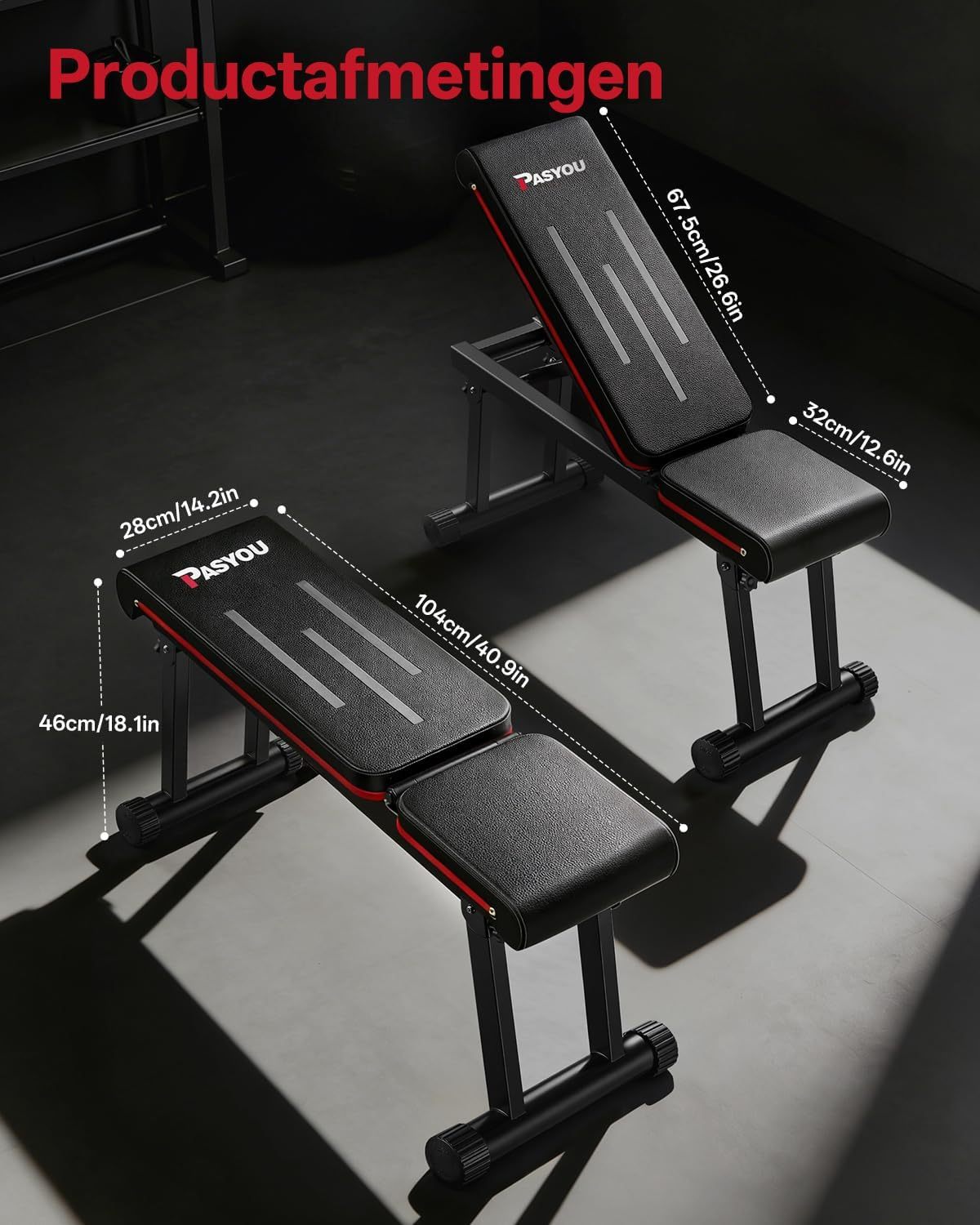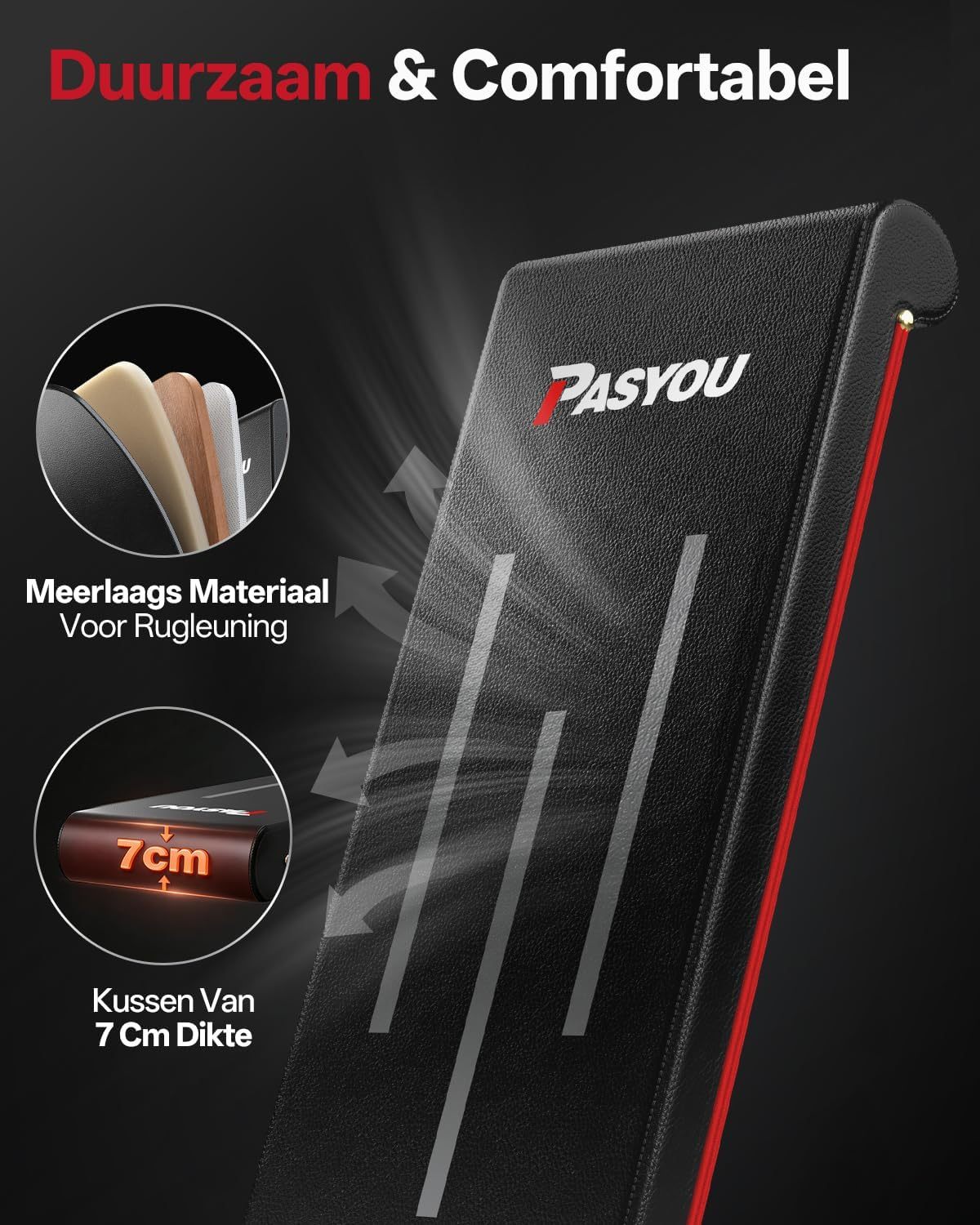 - 2-IN-1 VERSTELBARE & VLATTE HALTERBANK: De PASYOU halterbank fitness is een veelzijdig 2-in-1 trainingsstation. Uitgerust met 6 verstelbare rugleuninghoeken (0°/30°/45°/60°/75°/86°). Deze halterbank verstelbaar ondersteunt een vlakke, schuine en bijna verticale positie