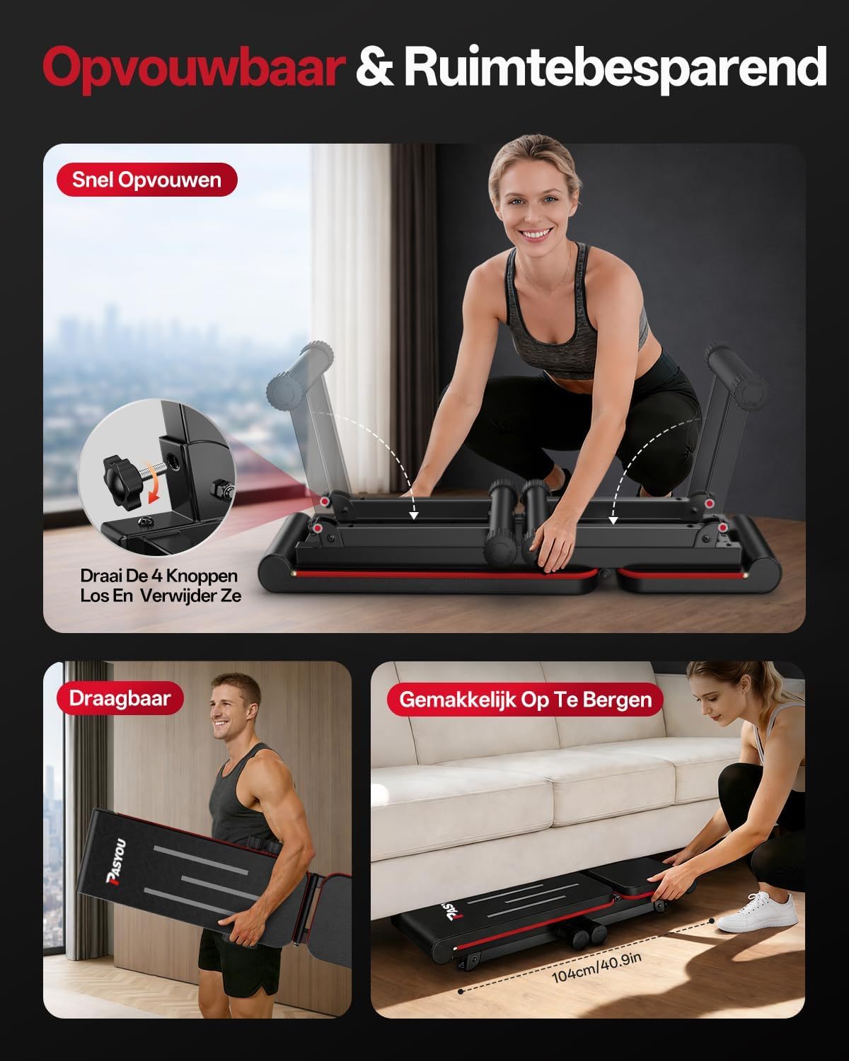 - INKLAPBAAR & RUIMTEBESPAREND: Deze fitness bank inklapbaar opklapbare heeft een gebruiksvriendelijk inklapmechanisme met draaiknop. Met een compact formaat van 104*28*14,3cm in opgevouwen toestand, neemt hij weinig ruimte in beslag, is hij gemakkelijk te verplaatsen en op te bergen, en dankzij de antislipvoetjes past hij in elke trainingsopstelling