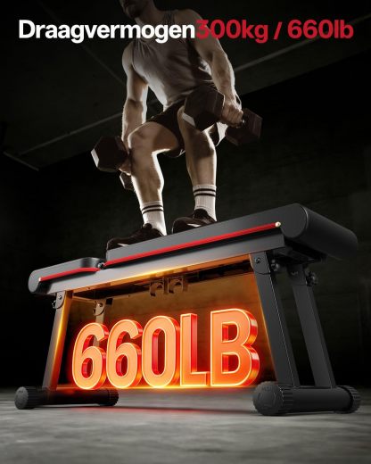 - 300KG ZWAARDRACHTIG DRAAGVERMOGEN: Vervaardigd van precisiegelast hoogwaardig staal, beschikt deze vlatte halterbank over een draagvermogen van 300KG, garandeert duurzaamheid en stabiliteit voor zwaar tillen en intensieve trainingen. Verbeterd met dubbelspoorondersteuning (stabieler dan enkelspoorontwerpen), versterkte staalbuisjes en anti-slip knoppen, biedt deze fitnessbank een veilige platform voor al uw banktrainingsroutines