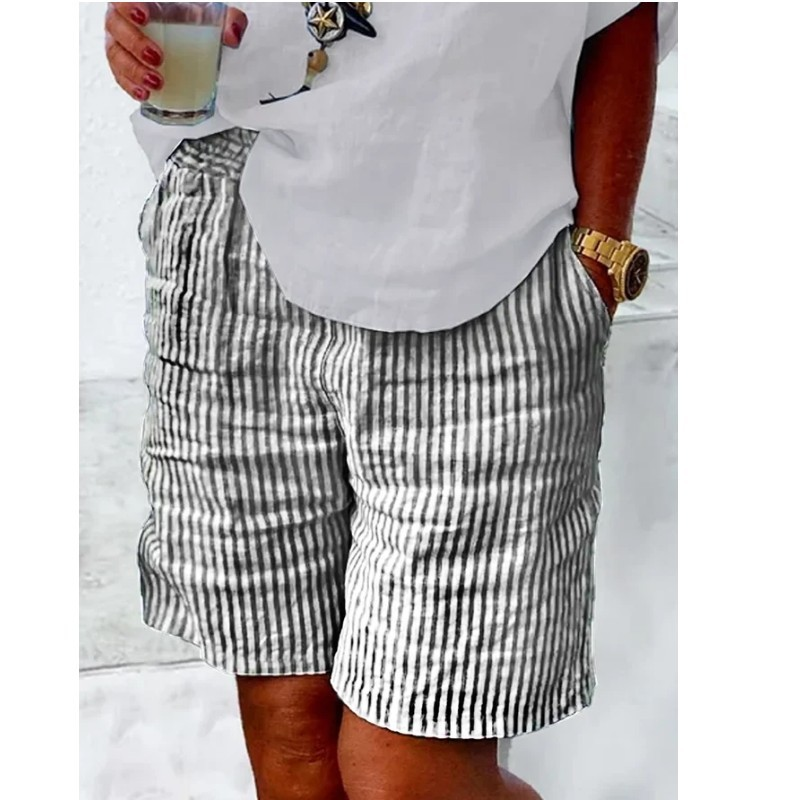 Cotton And Linen Loose Geometric Linen Shorts