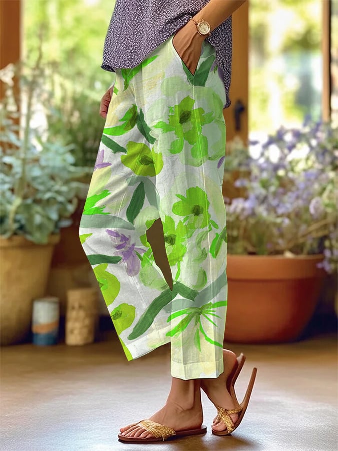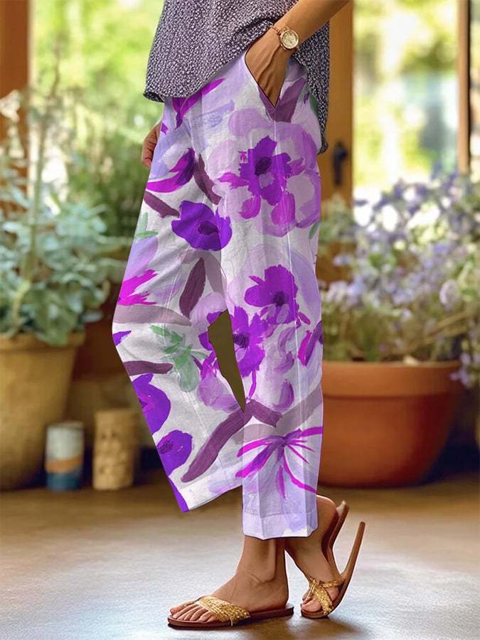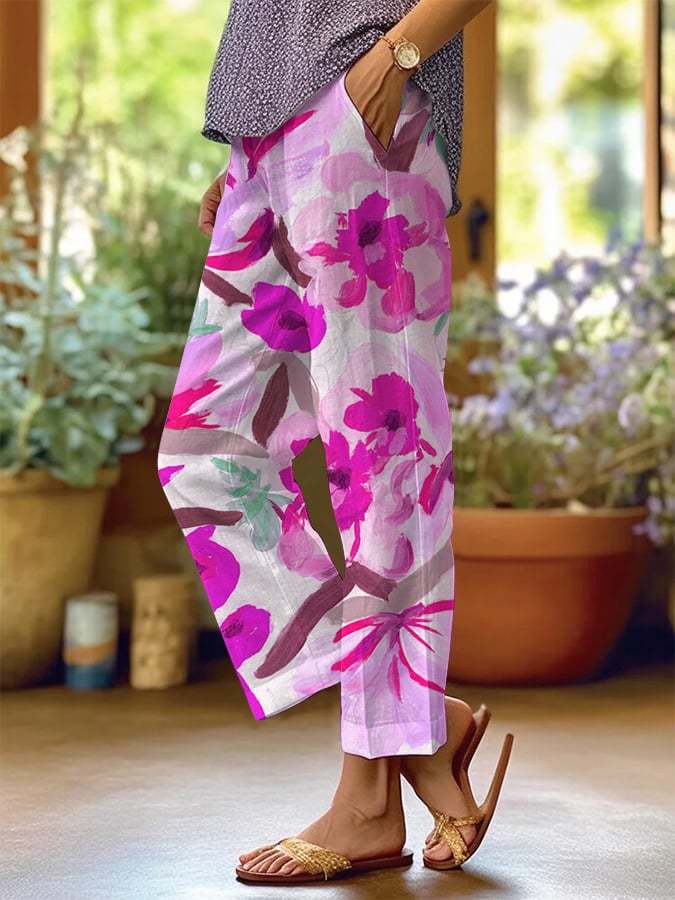 Women's Retro Floral Loose Casual Pants (With Pockets)