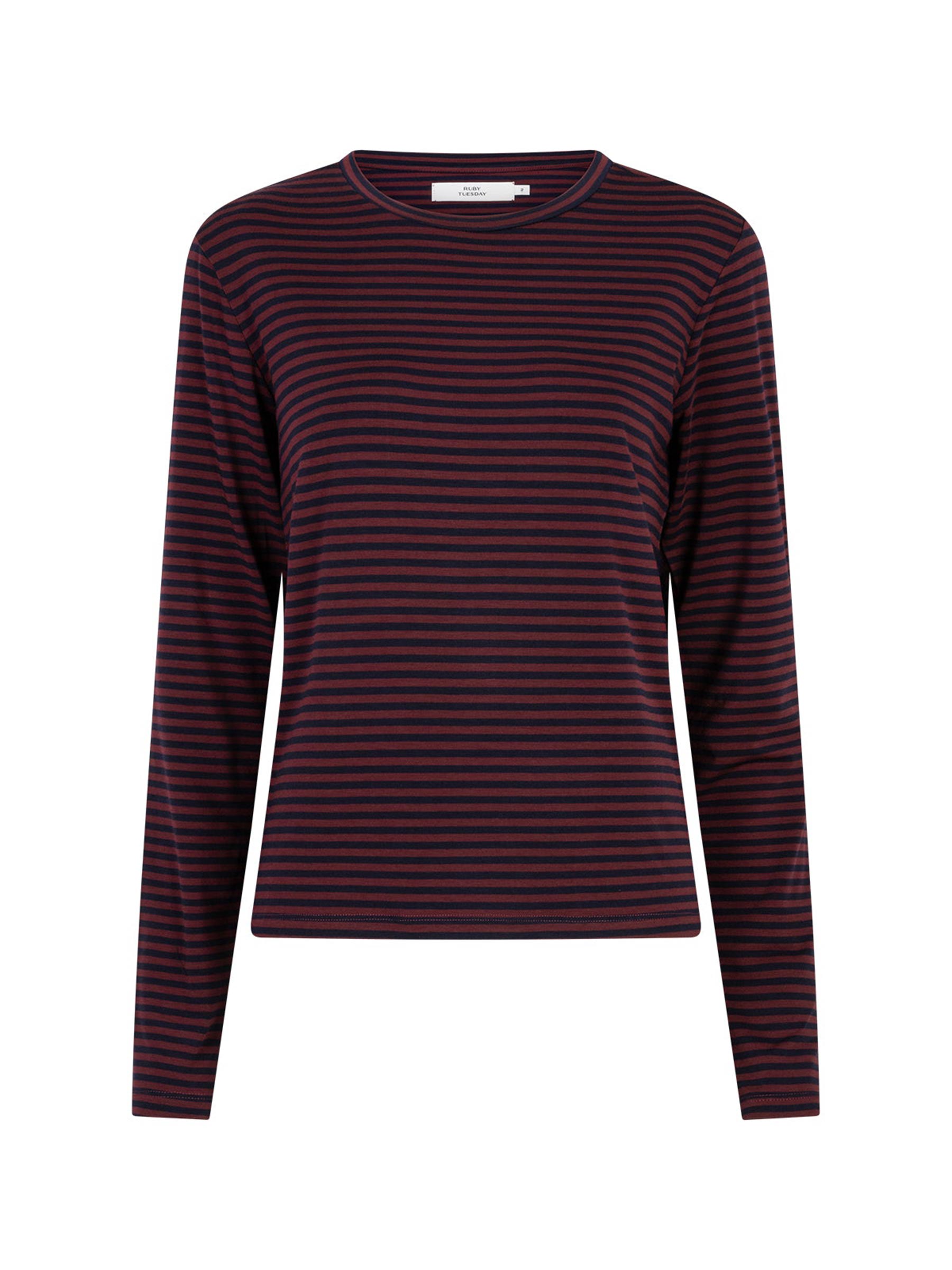 Deze donker rood gestreepte longsleeve van Ruby Tuesday is een fijne basic met een speelse twist. De subtiele strepen in rood en navy maken hem makkelijk te combineren en geven net dat beetje extra. Leuk met een jeans en sneakers of juist onder een blazer voor een casual chic look.