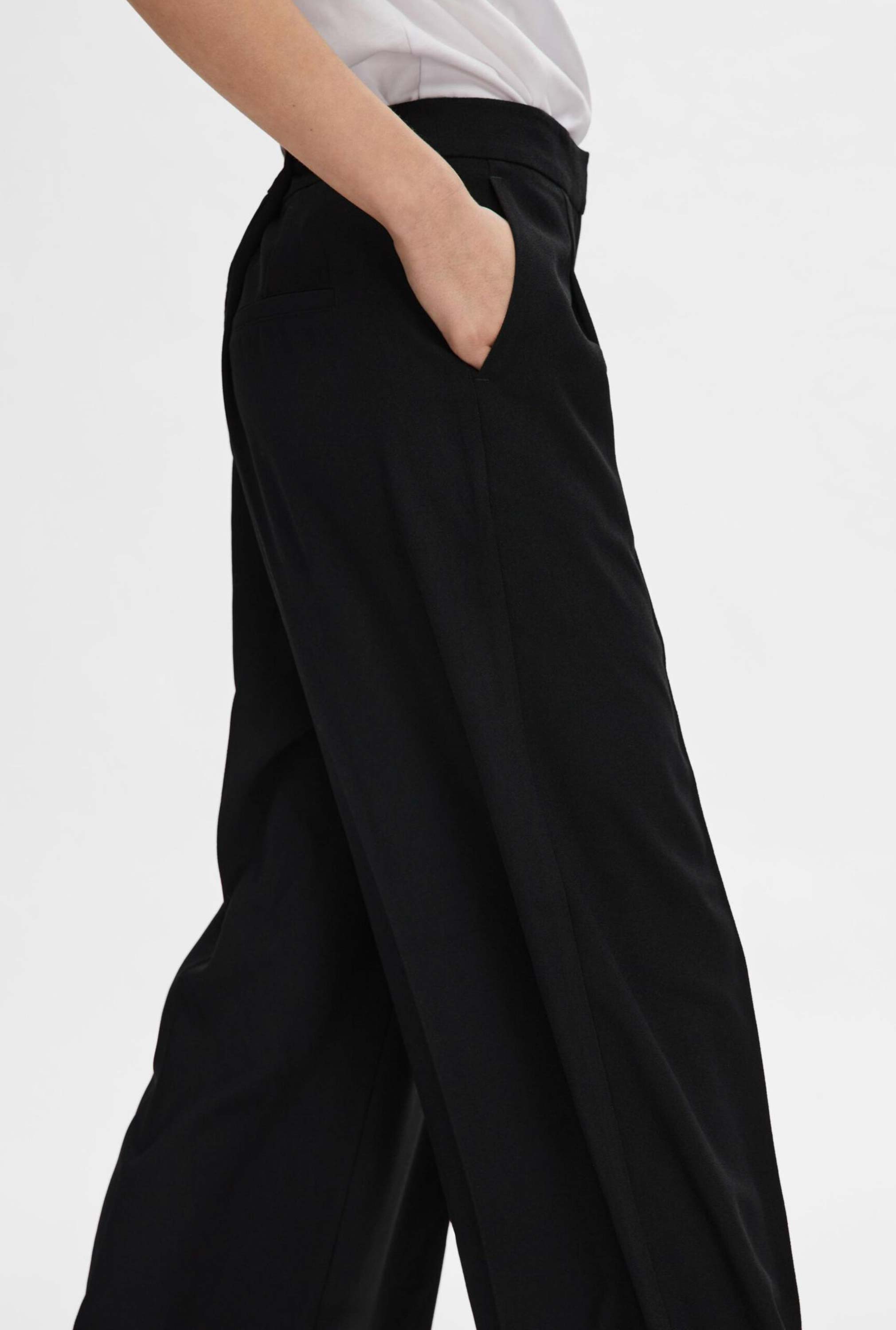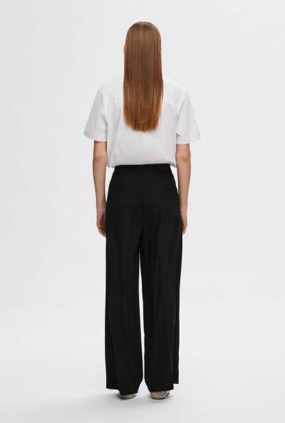 Deze zwarte pantalon van Selected Femme is een perfect item die niet kan ontbreken uit jouw garderobe. De wide-leg broek is gemaakt van 100% polyester. Zacht, kreukvrij én comfortabel! Combineer de broek met een blouse of t-shirt om je outfit compleet te maken.