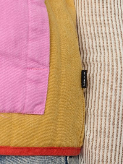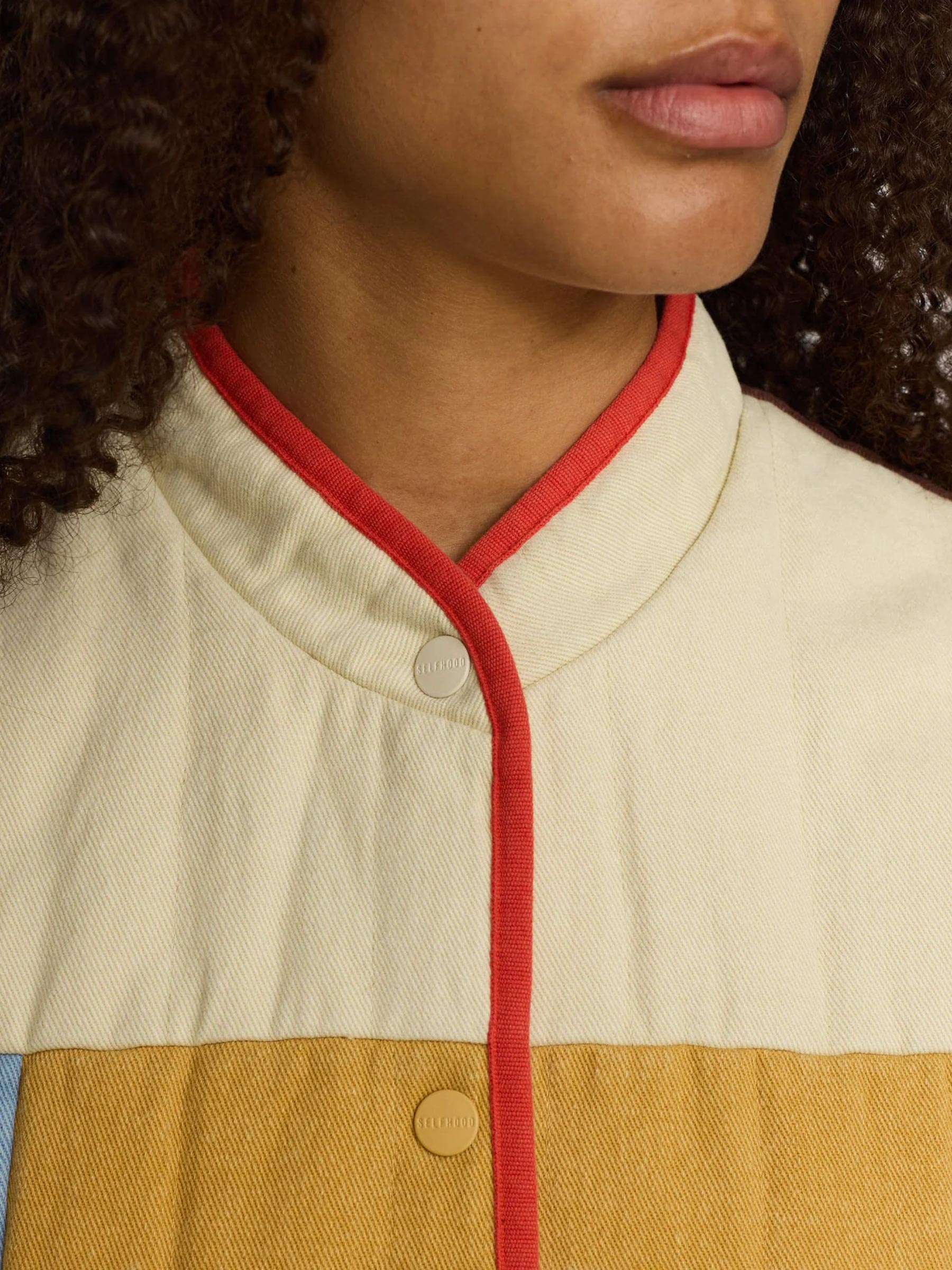 Deze bodywarmer van Selfhood is een mouwloos jack met een leuk geel-roze kleurblok-patroon en een stoere staande kraag. Hij is gemaakt van biologisch katoenen twill en gevuld met Recycled Thinsulate™, zodat je lekker warm blijft zonder dat hij dik aanvoelt. Precies het soort item waar je steeds weer naar grijpt.
