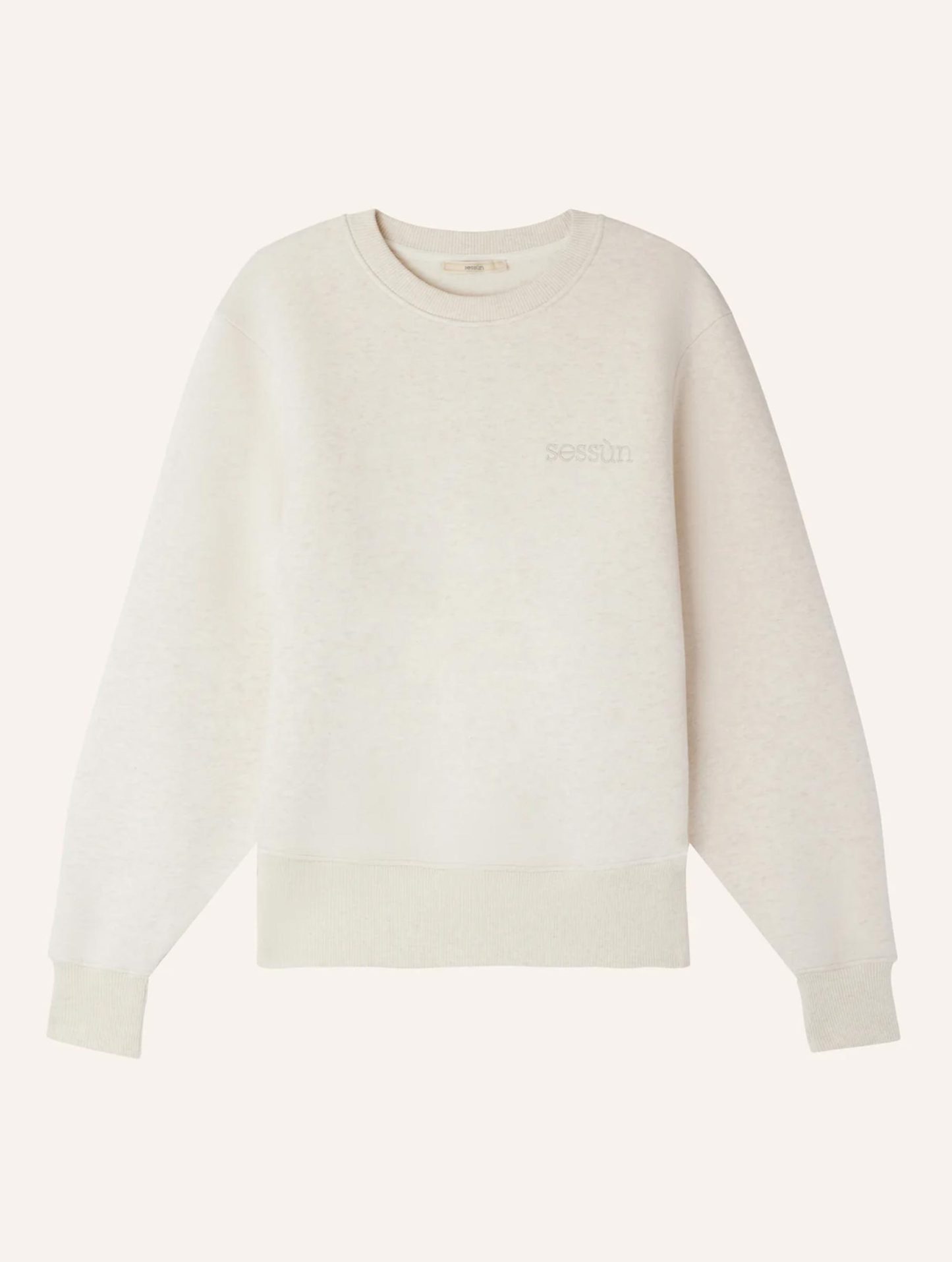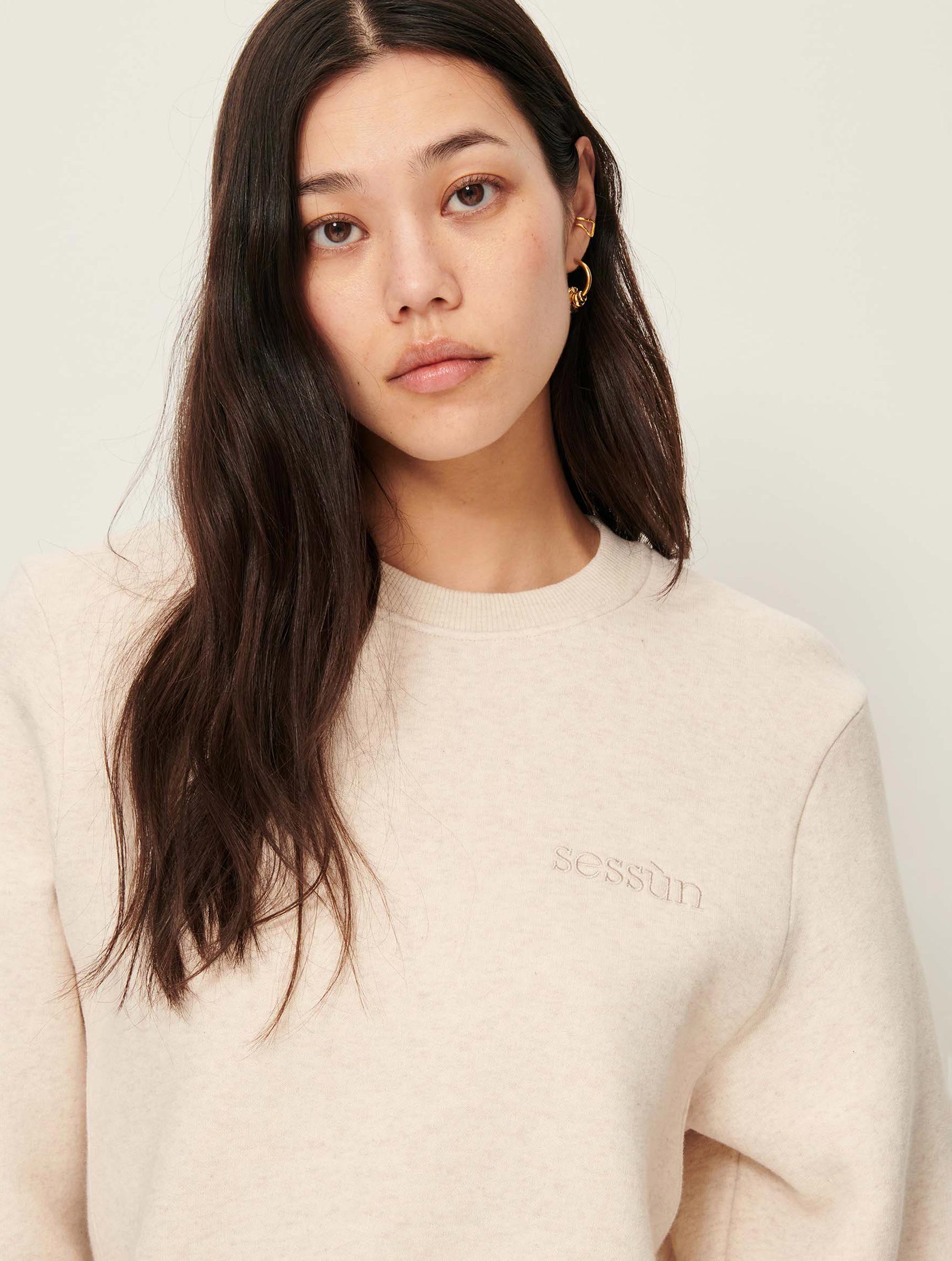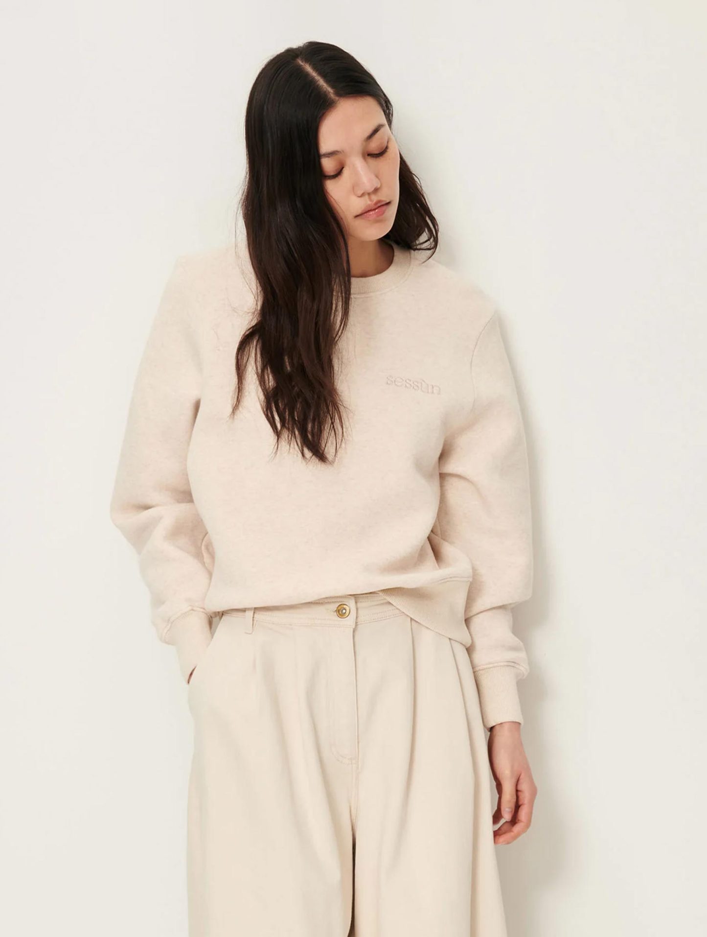 Deze ecru sweater van Sessùn is perfect voor relaxte dagen waarop je toch iets moois aan wilt. De zachte katoenen kwaliteit en subtiele logo-borduring geven een verfijnde, rustige uitstraling. Combineer met een lichte broek voor een ton-sur-ton look die altijd goed is.