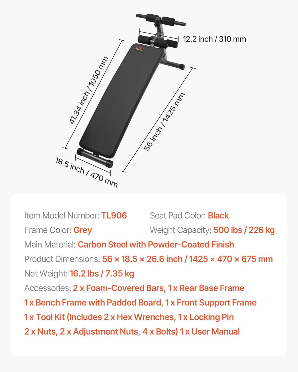 | Item model number | Sit Up Bench 500 Lbs Capacity |