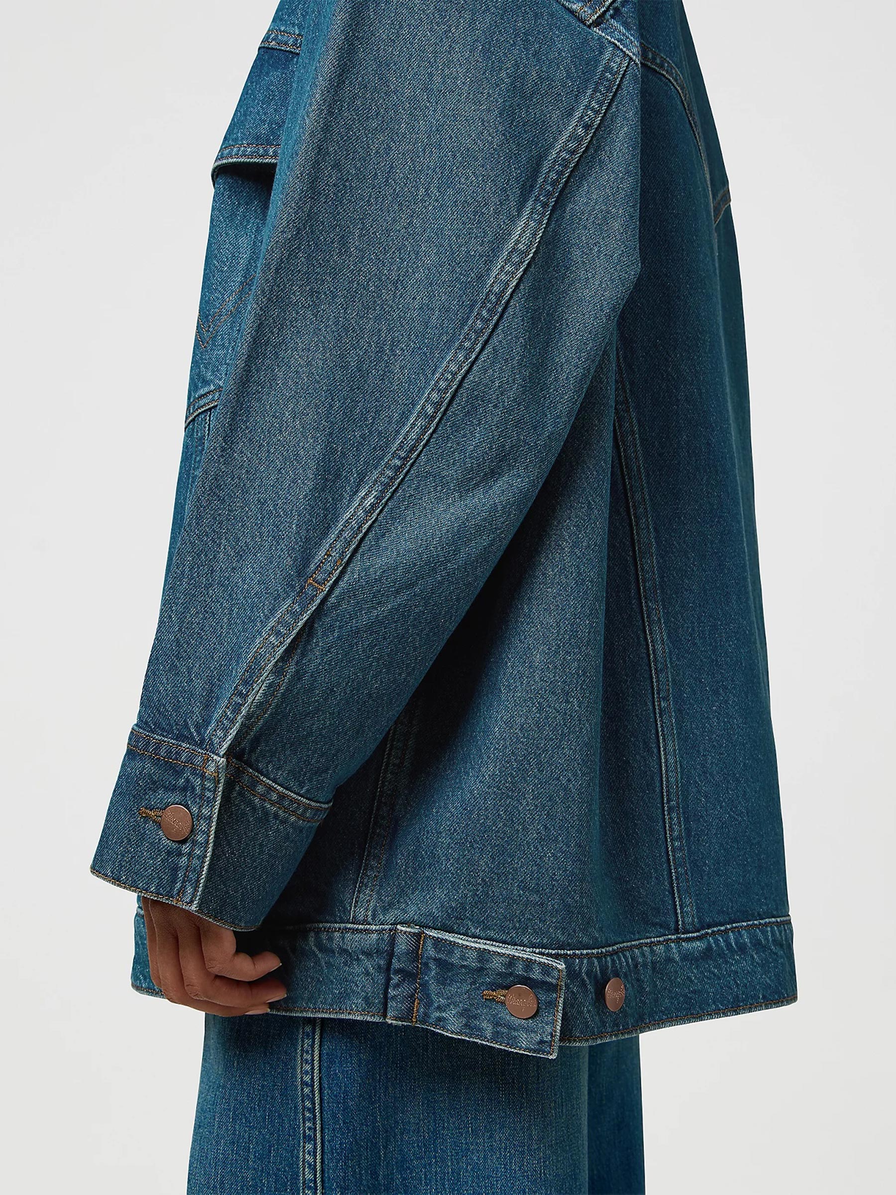 Dit blauwe denim jack van Wrangler is een klassieker met een moderne attitude. De oversized fit, stevige stof en stoere details maken dit jack een statement piece dat je elke dag anders kunt dragen. Ga voor een coole double denim look of style hem nonchalant over een jurk of rok.